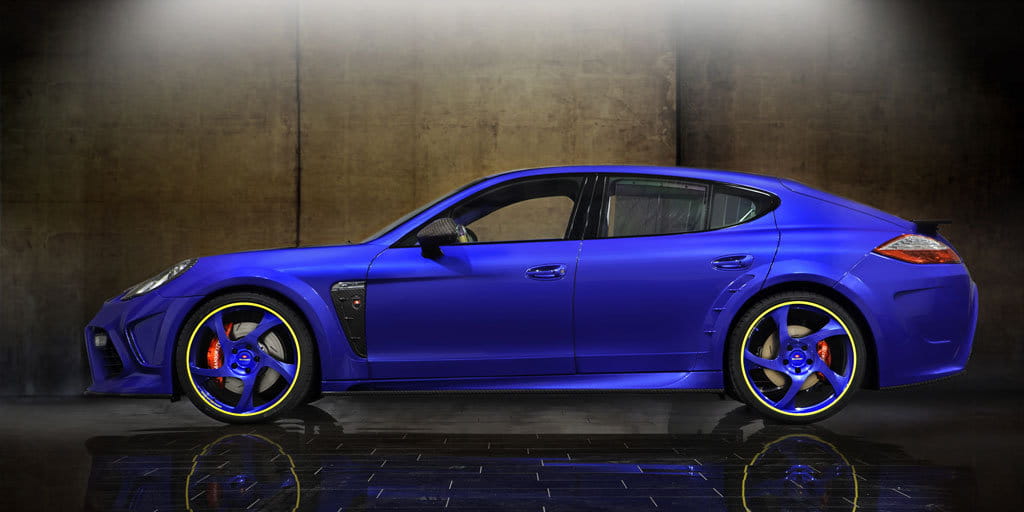 Solamente una preparación de Mansory llegaría al punto de combinar “artísticamente” el violeta, el amarillo y el negro para conseguir que nos frotemos los ojos al ver estas imágenes. Además el cargamento de fibra de carbono es especialmente amplio pues casi todas las partes de color negro están realizadas con este material, por no hablar de las suculentas ruedas violetas con aro en amarillo de 22” o las poco disimuladas luces LED. Lo más bonito que se puede decir es que este Panamera tiene un aspecto muy “juvenil”.