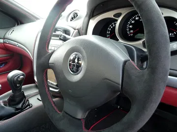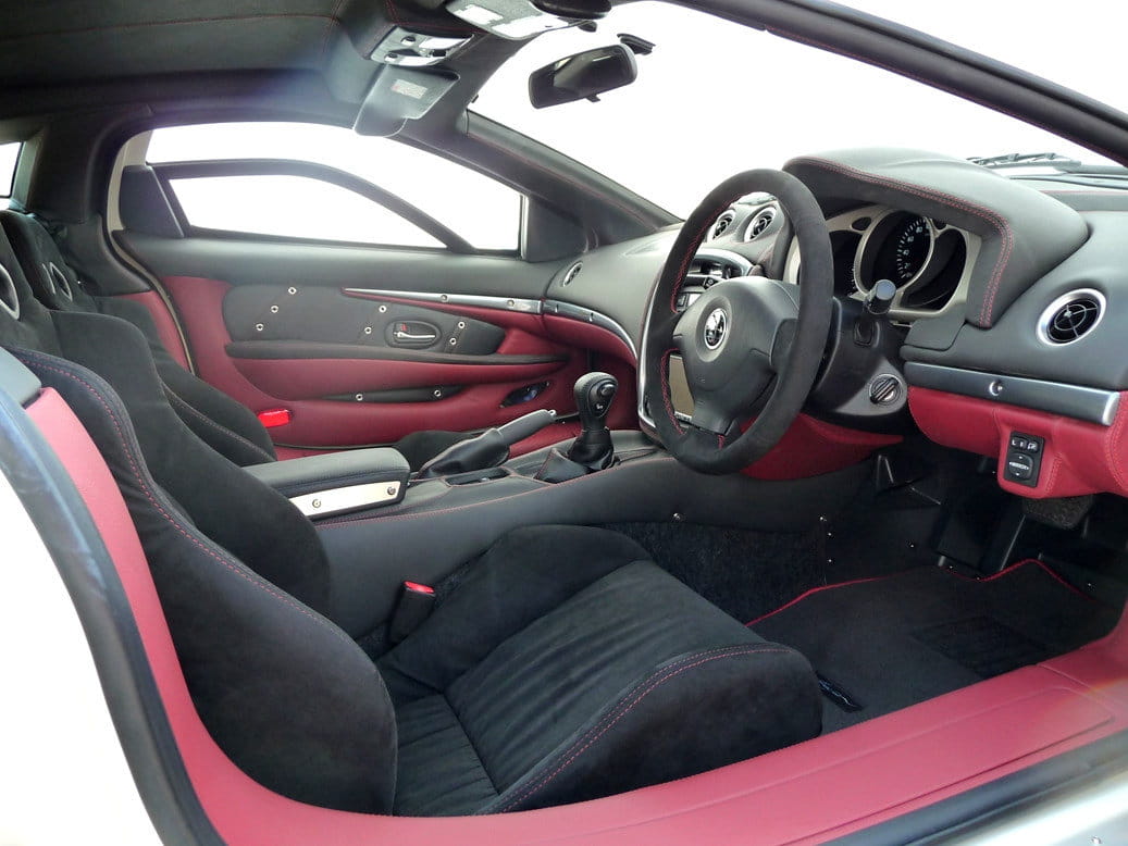Los relieves que quedan en la superficie se tornan en un interior que apunta muy buenas maneras. Es bicolor y está cubierto de piel de Alcantara por doquier además de por detalles en plástico con aspecto metalizado. En definitiva no es tan original como la carrocería pero se le acerca. Y a pesar de lo que se pudiera pensar este deportivo no abusa de materiales ligeros sino más bien lo contrario y alcanza los 1.600 kg de peso.