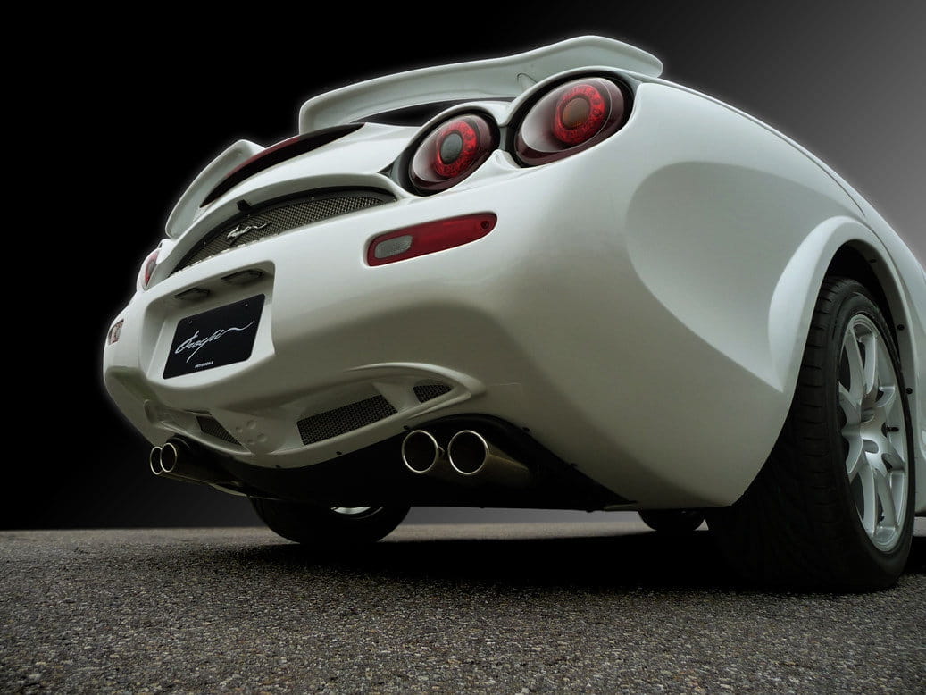 Al Orochi hay que mirarlo con ojos japoneses para entender su atrevido diseño. En líneas generales parece un coupé biplaza tradicional pero en los detalles se deja llevar por los relieves más extremas, no hay más que ver su frontal que más que de boca de dragón parece de una piraña. En su retaguardia luce un “complicado” alerón y junto a las ópticas ofrece una imagen de cierta inspiración italiana, lejana desde luego.