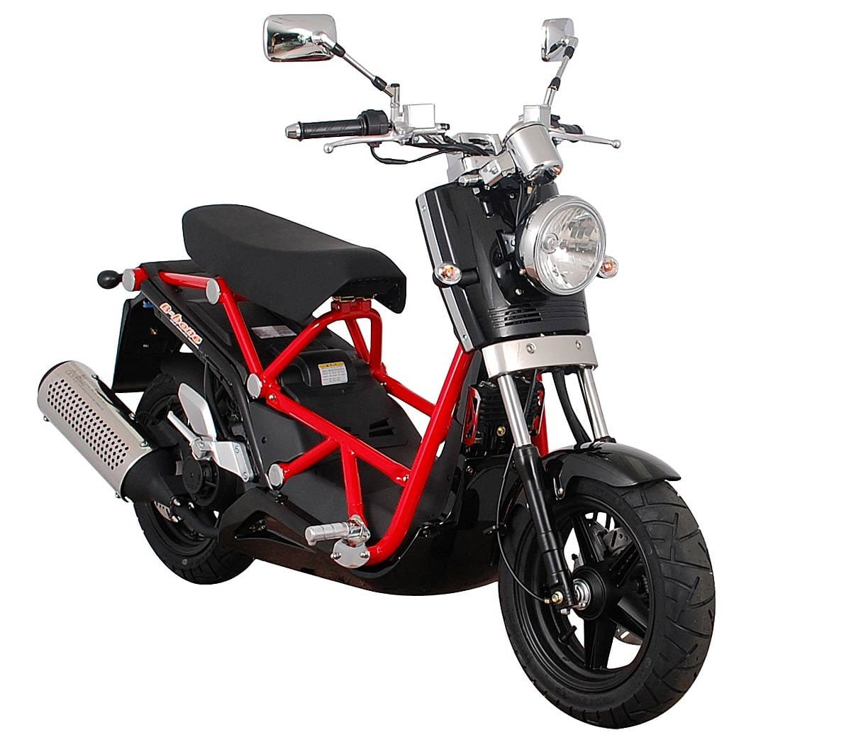 Las partes del chasis multitubular que quedan al desnudo son de distinto color que la carrocería (blanco, negro o rojo) lo que hace que resalten mucho más sobre el resto del cuerpo de la motocicleta. Aún sin tener este detalle en cuenta toda la B-Bone rezuma detalles diferenciadores con respecto a otros scooter con aire custom, como el faro redondeado y sobresaliente por debajo del manillar, los retrovisores rectangulares en cromado o el voluminoso escape.