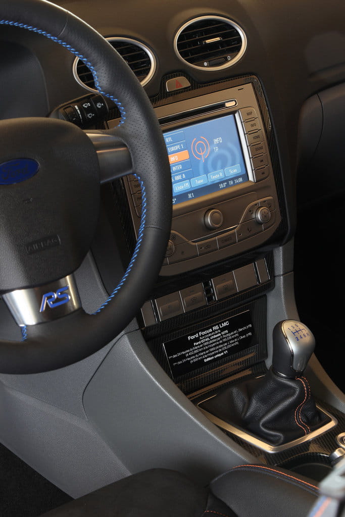 Cada uno de estos cinco Ford Focus RS Le Mans Classic cuenta con su propia decoración exclusiva, con los mismos colores de aquellos vehículos que hicieron historia para Ford en Le Mans. El RS de color negro con bandas longitudinales plateadas y llantas multirradio doradas recuerda al Ford Mk.II (triunfador en 1966), mientras que el rojo con bandas blancas y llantas negras hace lo propio con el Ford Mk.IV (ganador en 1967).
