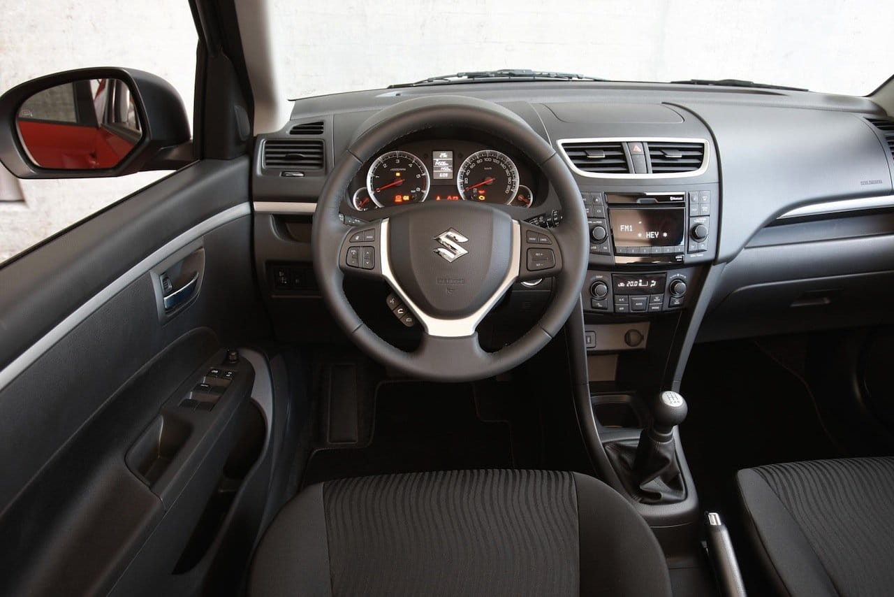 Queda claro que la apariencia interior, muy “seca” hasta el momento en el Swift, ha sido uno de los parámetros que han querido modificar. El nuevo modelo cuenta con un aspecto más moderno gracias en parte a la inspiración tomada del interior del Kizashi. De la berlina coge la forma de la consola central e incluso el estilo del nuevo volante. Los mandos y el display LCD del sistema de sonido también son una novedad y ofrecen un aspecto a la altura de estos tiempos.