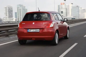 En esencia el Swift sigue siendo un utilitario pequeño y se sigue identificando de forma sencilla, los retoques a su fachada (ópticas, parrilla, etc) y a sus cuartos traseros, con nuevos faros, paragolpes y portón trasero) son los únicos cambios visibles en su cuerpo. Lo que no se aprecia a primera vista es que el Swift ha crecido hasta los 3.85 m de longitud y su plataforma ha evolucionado hasta los 2.43 m de batalla. Más amplio pero sin llegar al nivel de Seat Ibiza, Peugeot 207 y compañía.
