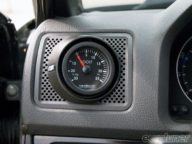 El caso es que el Corrado de Jason Hayden tiene algo de especial. Por fuera es como cualquier otro Corrado SLC, el VR6 en nuestro continente, del año 92 a excepción de unas llantas de aleación oscuras pero por dentro es un “poquito” más moderno. Un solo vistazo al habitáculo nos recuerda a un conocido con no muchos años: el Golf V GTI. Del compacto deportivo moderno toma el salpicadero, el cuadro de instrumentos, el volante o el reconocible tapizado de los asientos. Pero no es lo único que toma prestado.