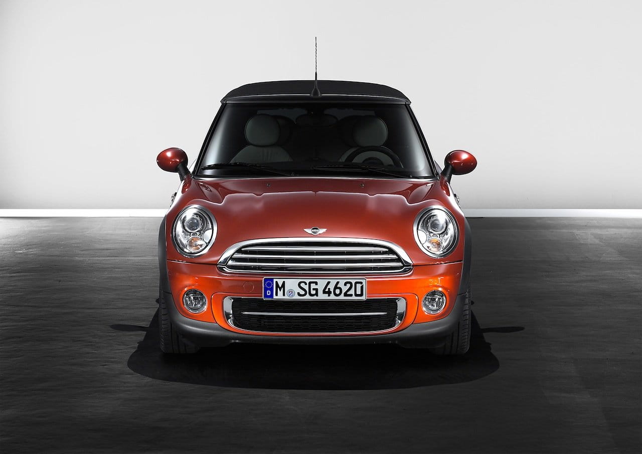 Los Mini One y Mini Cooper cuentan con una varilla transversal de color negro que en el caso del Cooper S desaparece a favor de las conocidas entradas de aire en las aletas, cromadas opcionalmente. A excepción del Mini John Cooper Works todos los Mini pueden llevar reflectores de color negro para las luces delanteras que fueron estrenados en el Mini 50 Camden. De paso habrá nuevos colores British Racing Green, Spice Orange, Eclipse Grey (sólo para Cooper S) y Ice Blue (posteriormente a la fecha de lanzamiento).