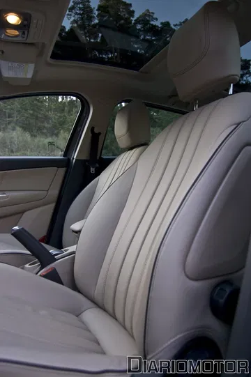 Nos acomodamos en el confortable asiento tapizado en piel del puesto del conductor. La oscilación en la altura de la base del asiento nos puede permitir situarnos desde una posición muy baja a una posición bastante alta, por encima de lo que permiten habitualmente otros compactos. Además el voladizo delantero al ser tan corto nos permite tener un control mayor sobre lo que sucede por ahí delante.