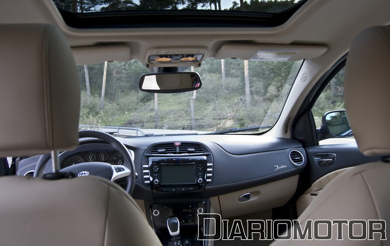 Hay que decir que el Lancia Delta gana mucho con el techo panorámico acristalado dividido en dos piezas. Sobra decir que hubiera sido mucho mejor un techo completo de una única pieza, pero en cualquier caso resulta más que suficiente para dar al habitáculo ese toque de luminosidad que siempre viene bien en un coche así.