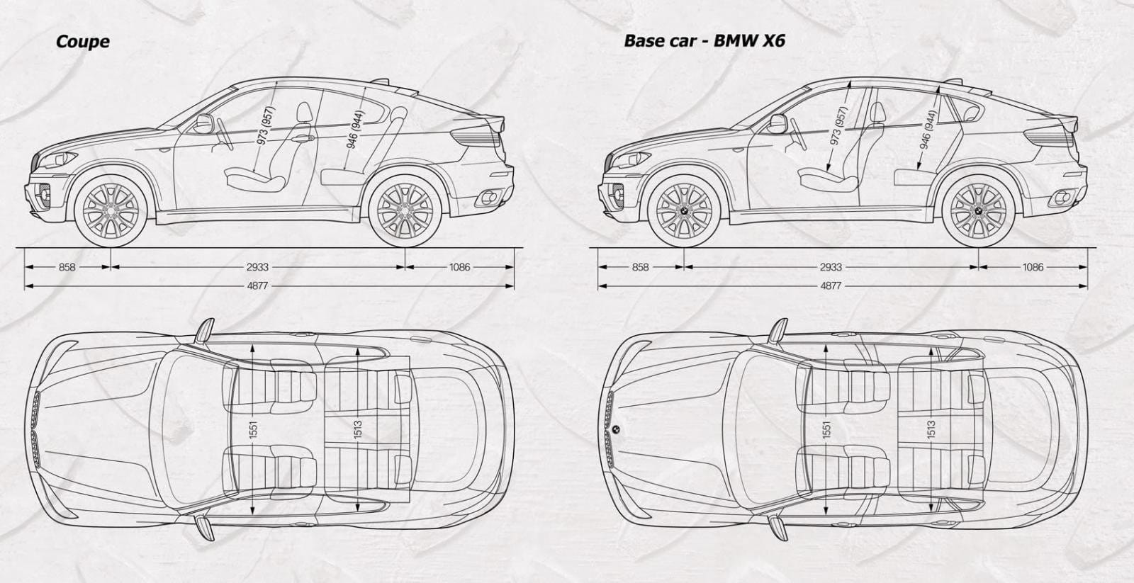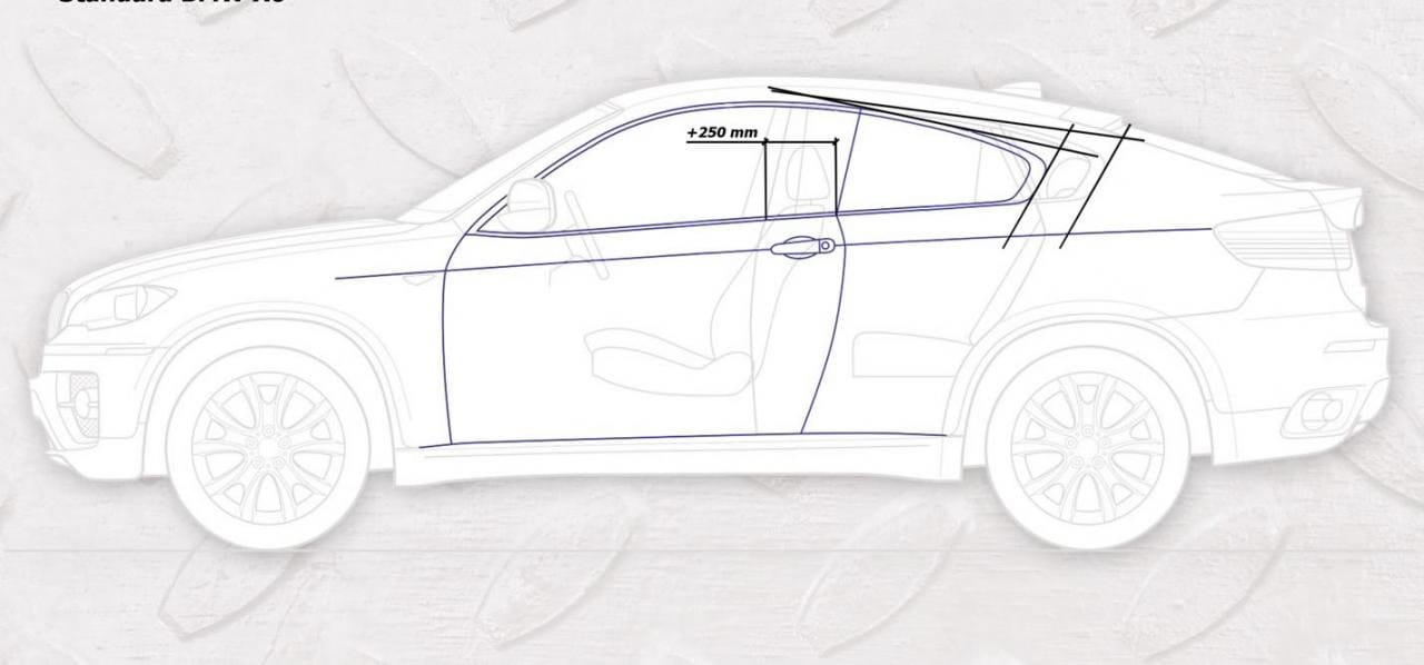 Este preparador ruso no ha hecho desaparecer las dos puertas traseras sino que ha hecho una modificación más intrusiva, de esas que no se homologan en una hora, trasladando el pilar B 25 centímetros más atrás de su posición original. Las ventanillas que terminan en el pilar D se agrandan y se adelantan 20 cm. La filosofía del diseño del X6 no cambia pero con tres puertas sí que parece más coupé.