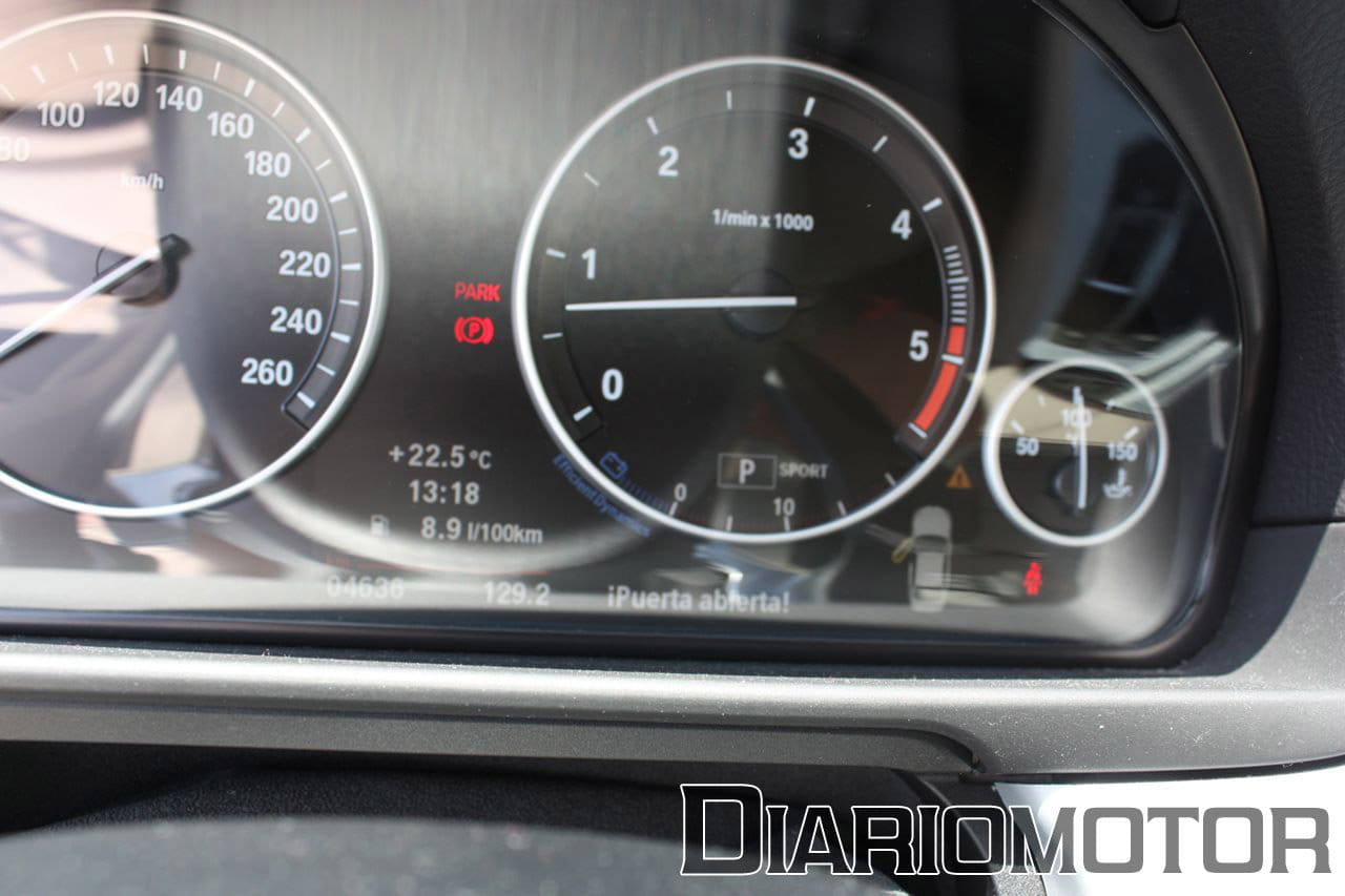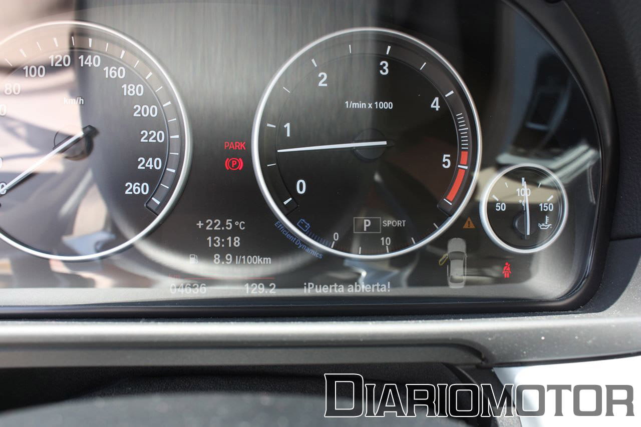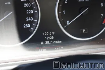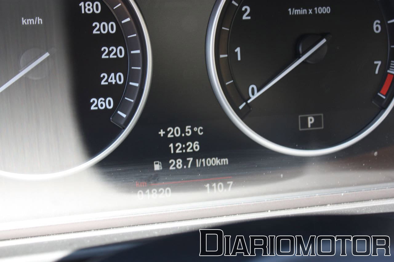 Dentro de los extras incluidos en el 530d probado estaba el Head-Up Display, que proyecta sobre el parabrisas la velocidad actual, las indicaciones del navegador y otras funciones. Es una opción que, aunque cara (1.675€), es muy útil y aporta seguridad al no tener que desviar la vista de la carretera.