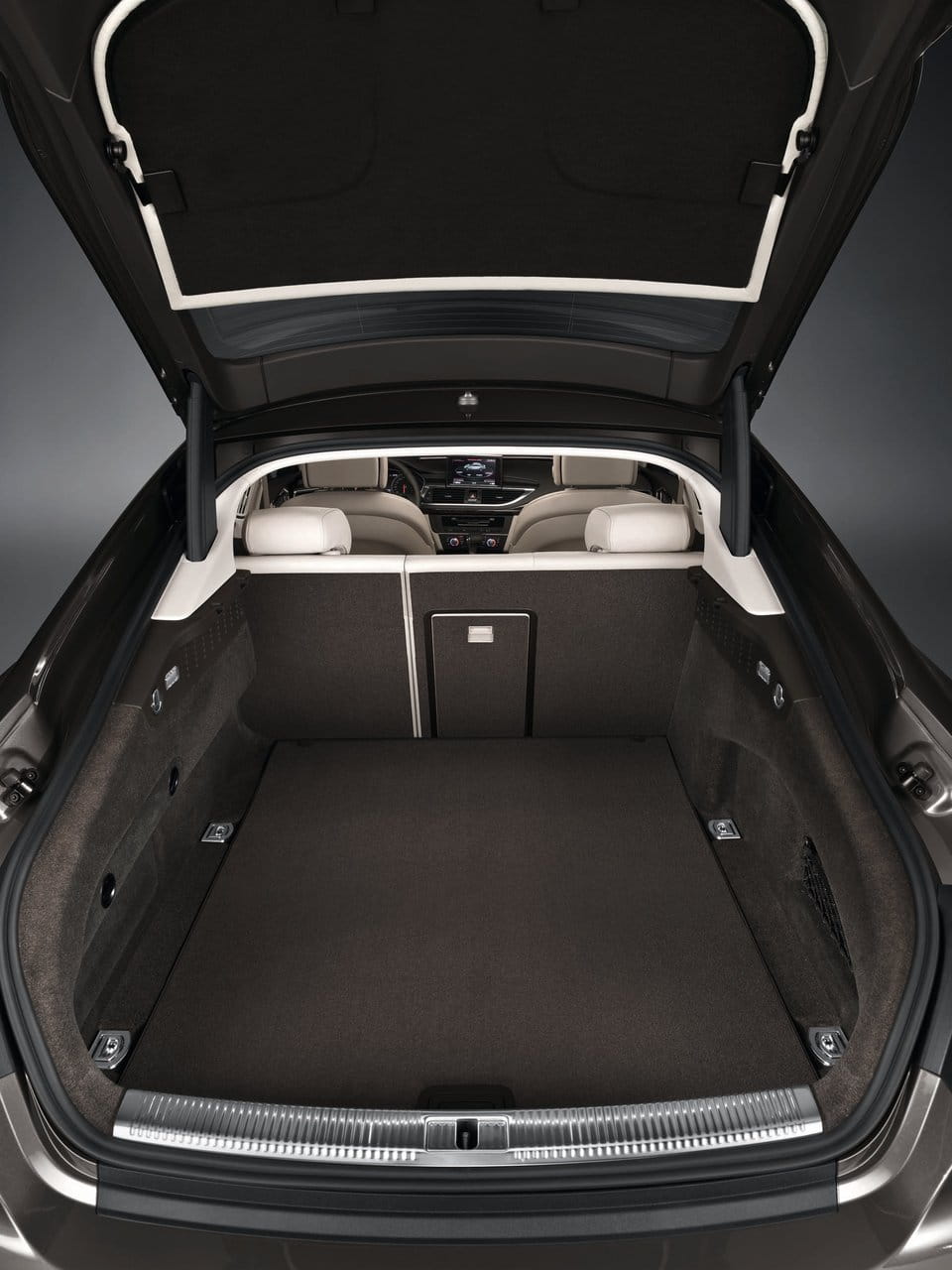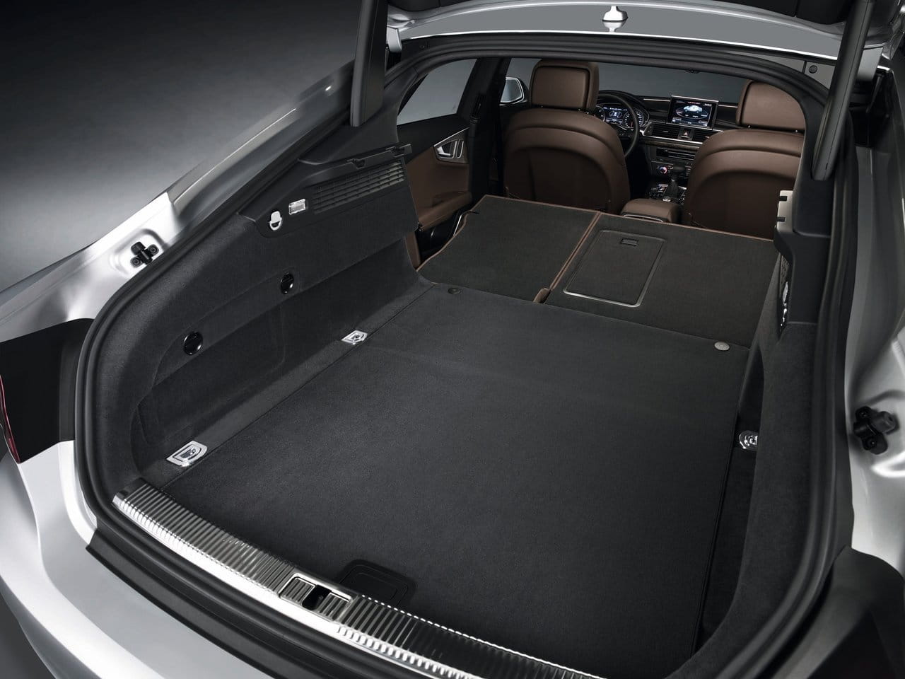 El corto voladizo trasero nos podría llevar a pensar que el maletero no es tan espacioso como el ya mencionado Audi A6. Pero contrariamente a lo que pensemos en un principio la realidad es que éste esconde un volumen similar con un acceso mejorado notablemente gracias a un gran portón trasero que facilita el acceso al espacio de carga y que nos permitirá alojar en el maletero objetos de volumen considerable que no hubiera sido posible cargar en un A6 o un A8.