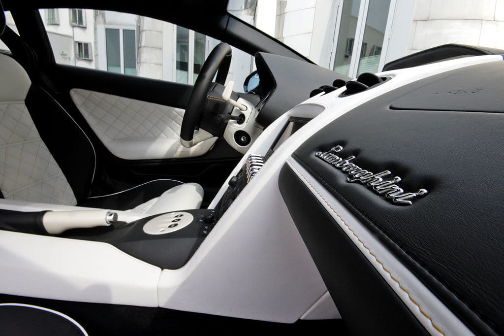 A pesar de que se atreven a remodelar un interior tan bello como el del Gallardo LP550-2 Balboni, lo hacen parcialmente y nada mal puesto que saben conservar el estilo a la perfección. Los apliques brillantes y la bitonalidad negro y blanco permanecen en un habitáculo con distinto tapizado. Simplemente otra forma de ver la armonía interior del Gallardo.