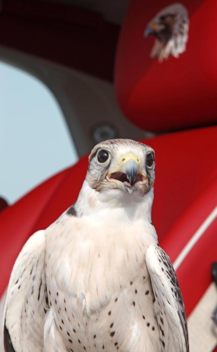 En el salpicadero la fibra de carbono hace su aparición en un color rojo más suave junto a un escudo dorado con la forma de la cabeza del halcón. Así mismo forma un contraste con los paneles de instrumentos con fondo en color blanco. Todo por supuesto remozado con las mejores pieles y los mejores acabados.