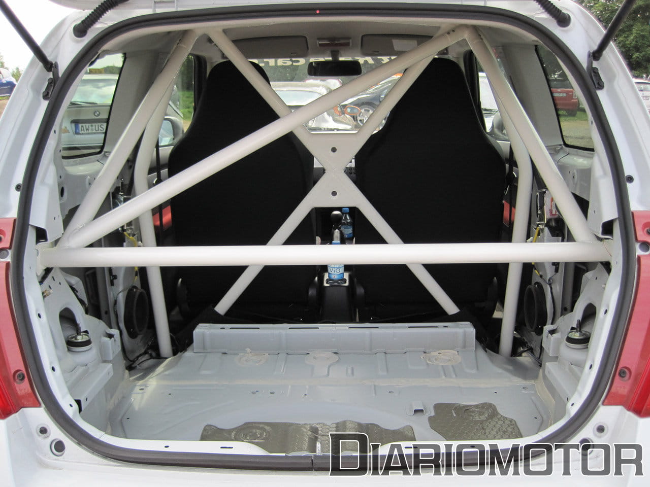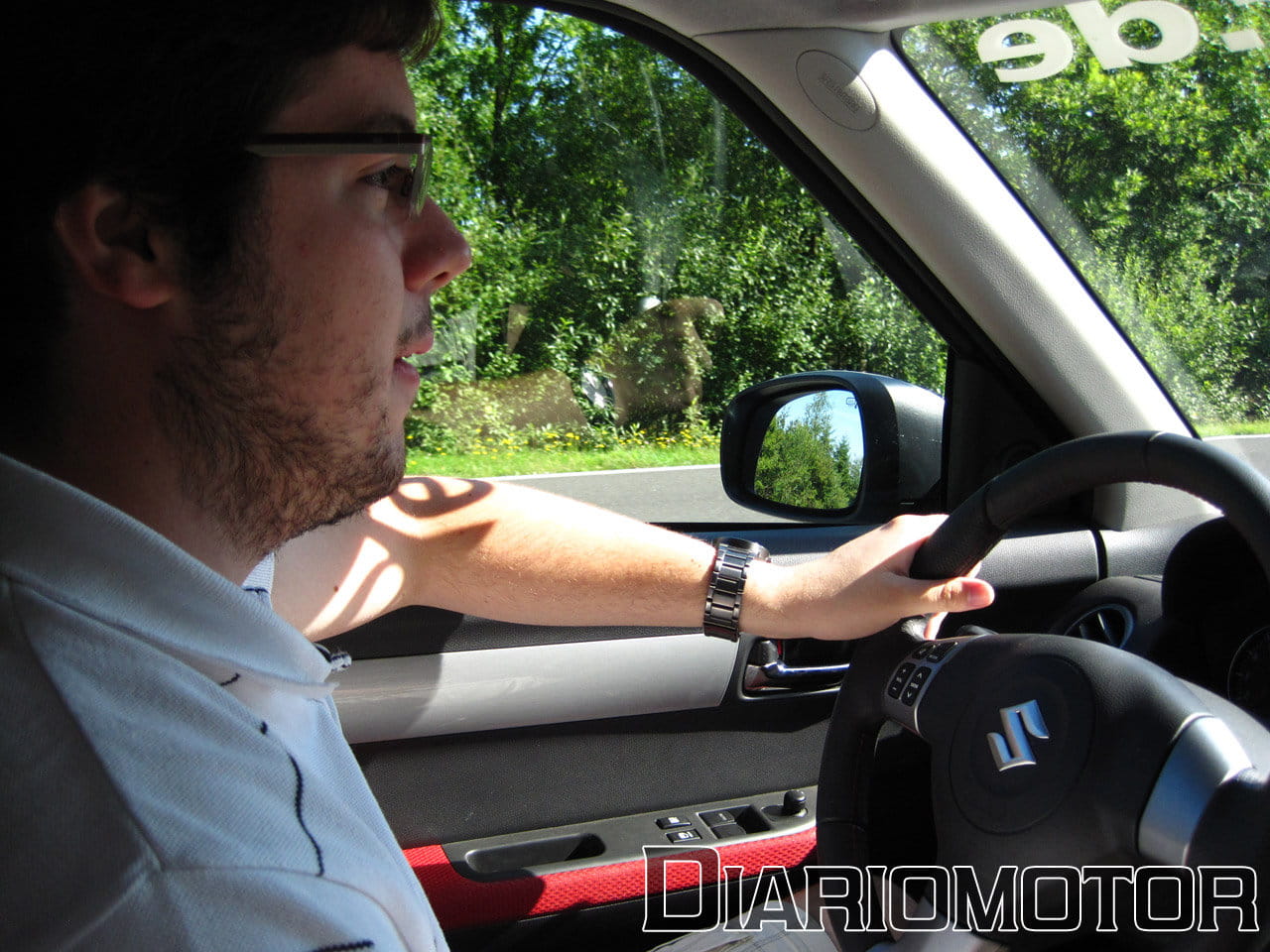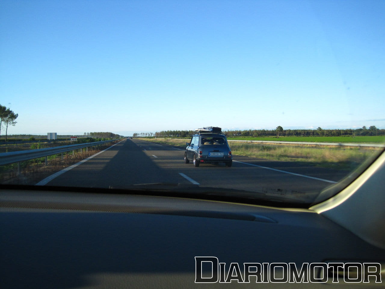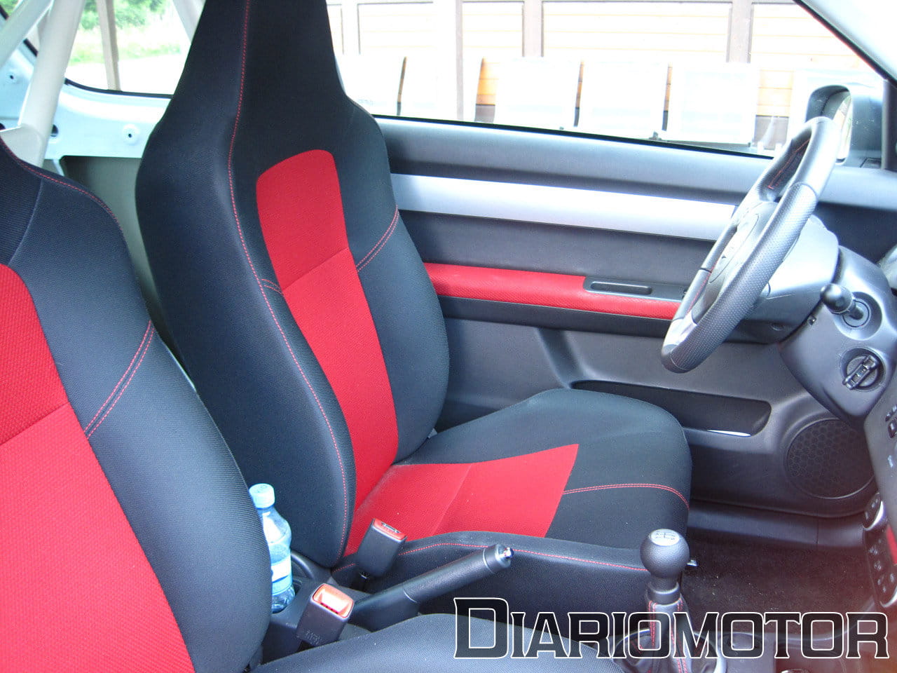 El puesto de conducción es de serie y el climatizador funciona, ideal para no freirse conduciendo en pleno mes de agosto. Arranco el motor y el escape suena ronco y grave, muy cercano debido a la total ausencia de aislamiento acústico trasero. Comienzo a rodar hacia la entrada y en los 5 km que me separan de la entrada advierto ya lo cortas que son las relaciones del cambio: en quinta marcha a 90 km/h de marcador ya se superan las 3.000 rpm. El coche va duro, suena muy bien y responde con precisión, pero no es rudo o incómodo. Ha sido una buena elección.