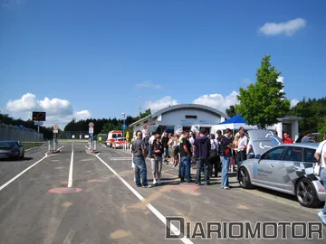 Antes de entrar al circuito, el dueño de la empresa, Theo Kleen, nos dió una vuelta en su Volkswagen Touran 2.0 TDI, para que conociésemos el circuito. Pensaba que sería una vuelta a un ritmo suave, que nos enseñaría las 73 curvas y sus 20.8 kilómetros con tranquilidad. Debí advertir que llevaba semi-slicks y que los ingleses que se acababan de bajar venían con la cara algo desencajada. Debí olerlo cuando empezó a acelerar y pasó el punto en el que la frenada pasa de frenada fuerte a frenada de emergencia con entrada de ABS incluida.