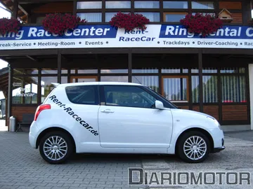 No era un Swift Sport cualquiera. El pequeño utilitario de Suzuki conserva todo el espíritu GTI de antaño y es ideal para una primera toma de contacto con el Nürburgring. El coche está lejos de la producción en masa. El motor 1.6 atmosférico pasa de los 125 a los 130 CV y se ha aligerado el conjunto hasta llegar a los 1.000 kg mediante la supresión de los asientos traseros, donde ahora hay una jaula antivuelco. La suspensión es ahora más firme y se reemplazan las llantas de 17 pulgadas con otras de 15 pulgadas con neumáticos semi-slick de 195 mm de sección.