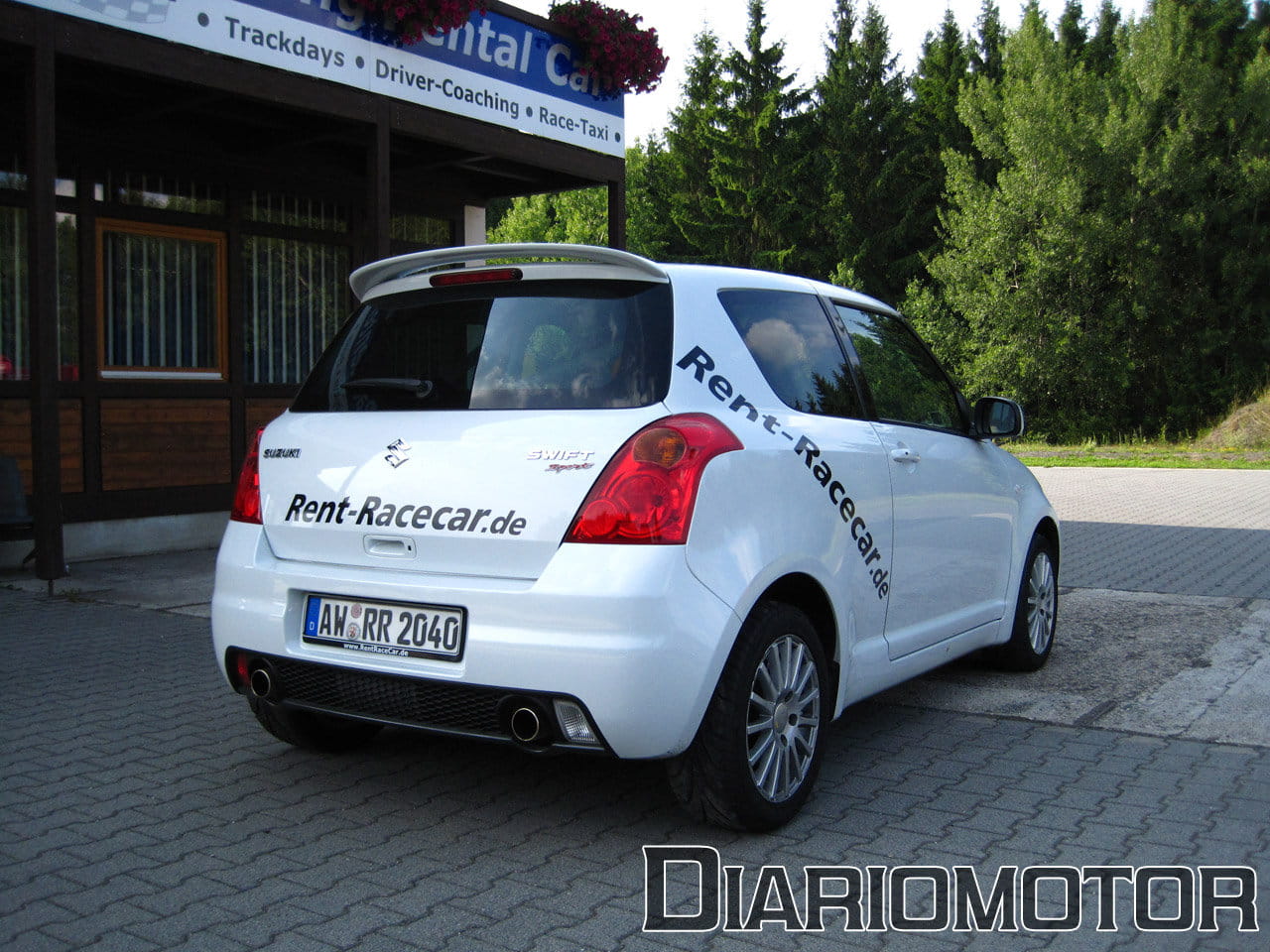 No era lo más adecuado meter una berlina sueca de viaje en el circuito, por lo que ya había apalabrado el alquiler de una track-tool, un Suzuki Swift Sport preparado para las labores de circuito. La empresa de alquiler (RentRaceCar – HKT GmbH) estaba en Wiessemscheid, un pueblo a unos cinco kilémtros de la entrada al ‘Ring. Circulando por las comarcales el ambiente que se respiraba ya era envidiable: Porsche, Ferrari, toda suerte de coches preparados y clásicos de toda calaña (incluido un DeLorean DMC-12) surcaban las carreteras con un adictivo destino común.