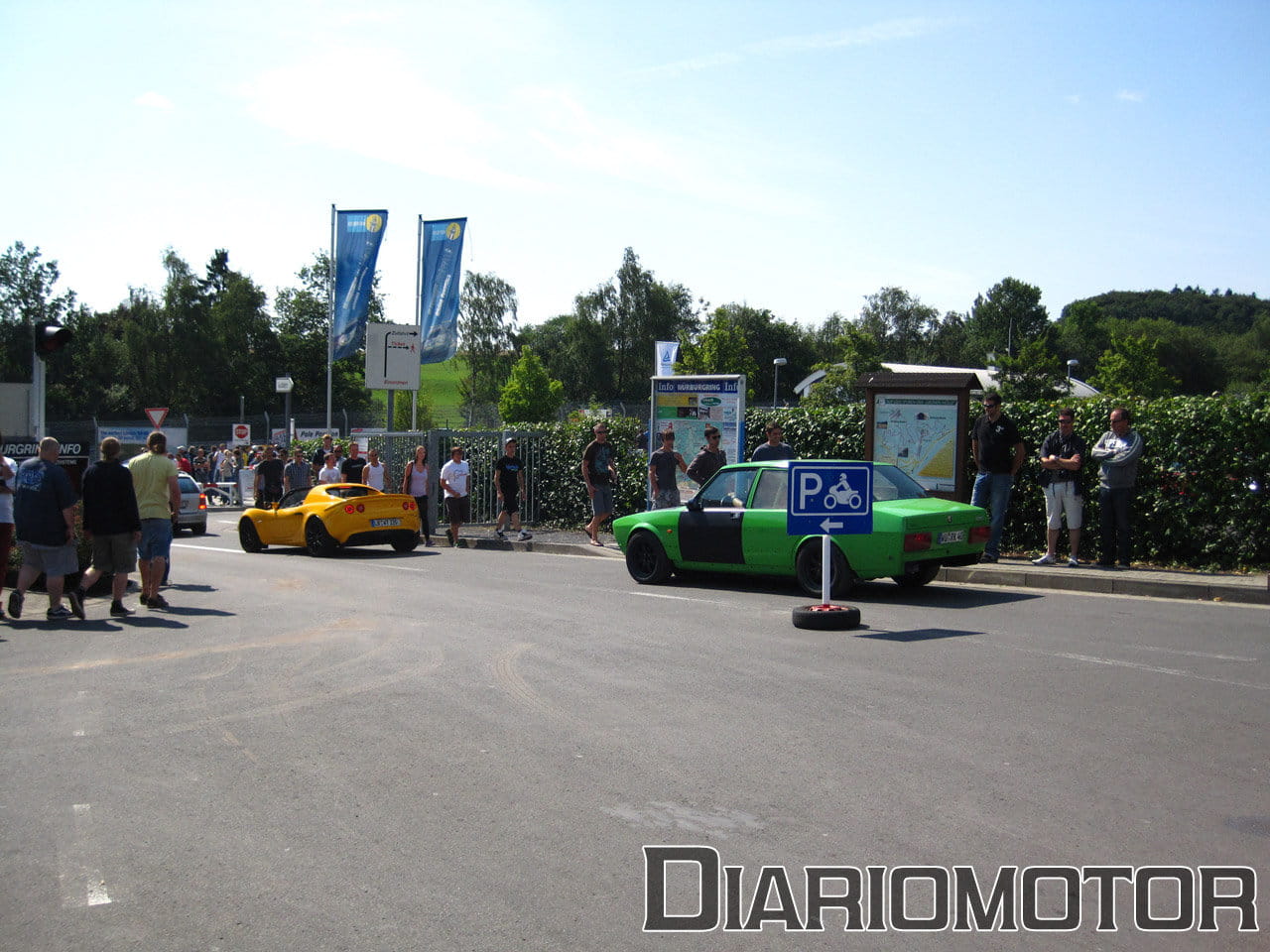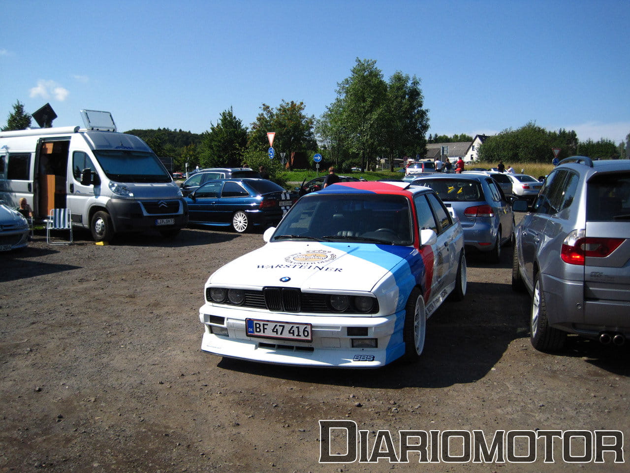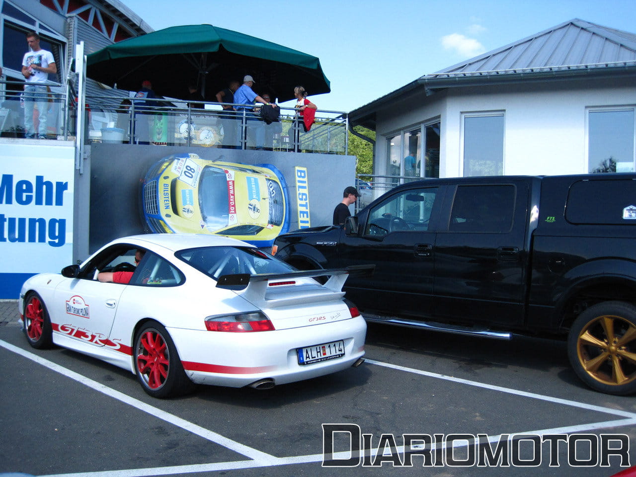 La experiencia Nürburgring no es únicamente acceder al circuito con el coche, es también respirar el ambiente que rodea a esta Meca del automóvil. Ya desde las carreteras cercanas se empiezan a ver gran cantidad de coches de buen calibre, que aumentan en número y calidad en cuanto enfilamos la salida hacia Nürburg, el pueblo en el que se ubica el circuito. Una vez en la entrada, es obligada una visita a los tres aparcamientos que la flanquean. Si te gustan los coches, se te pondrán los dientes muy largos.