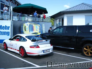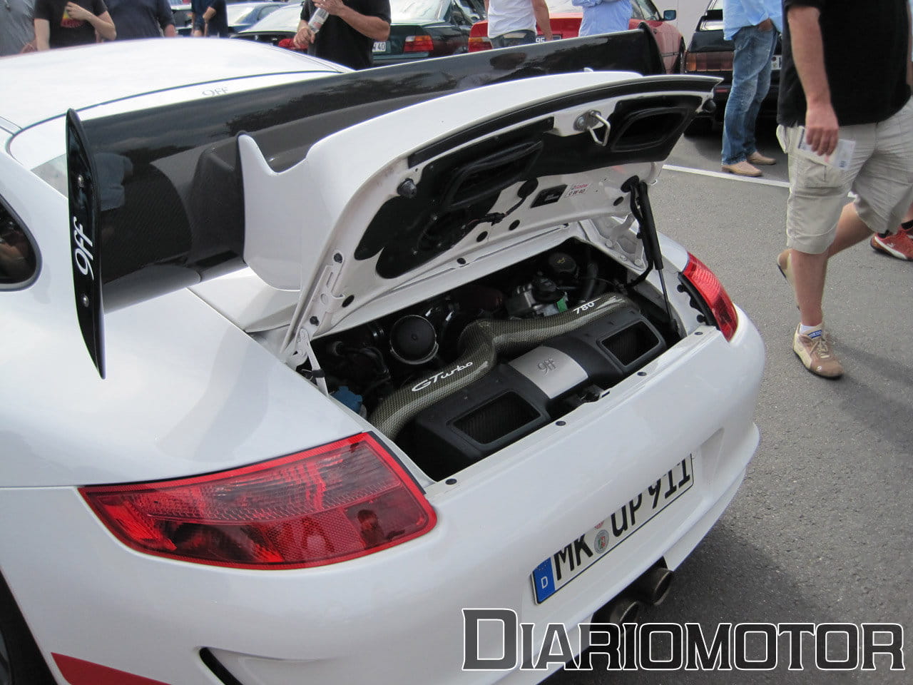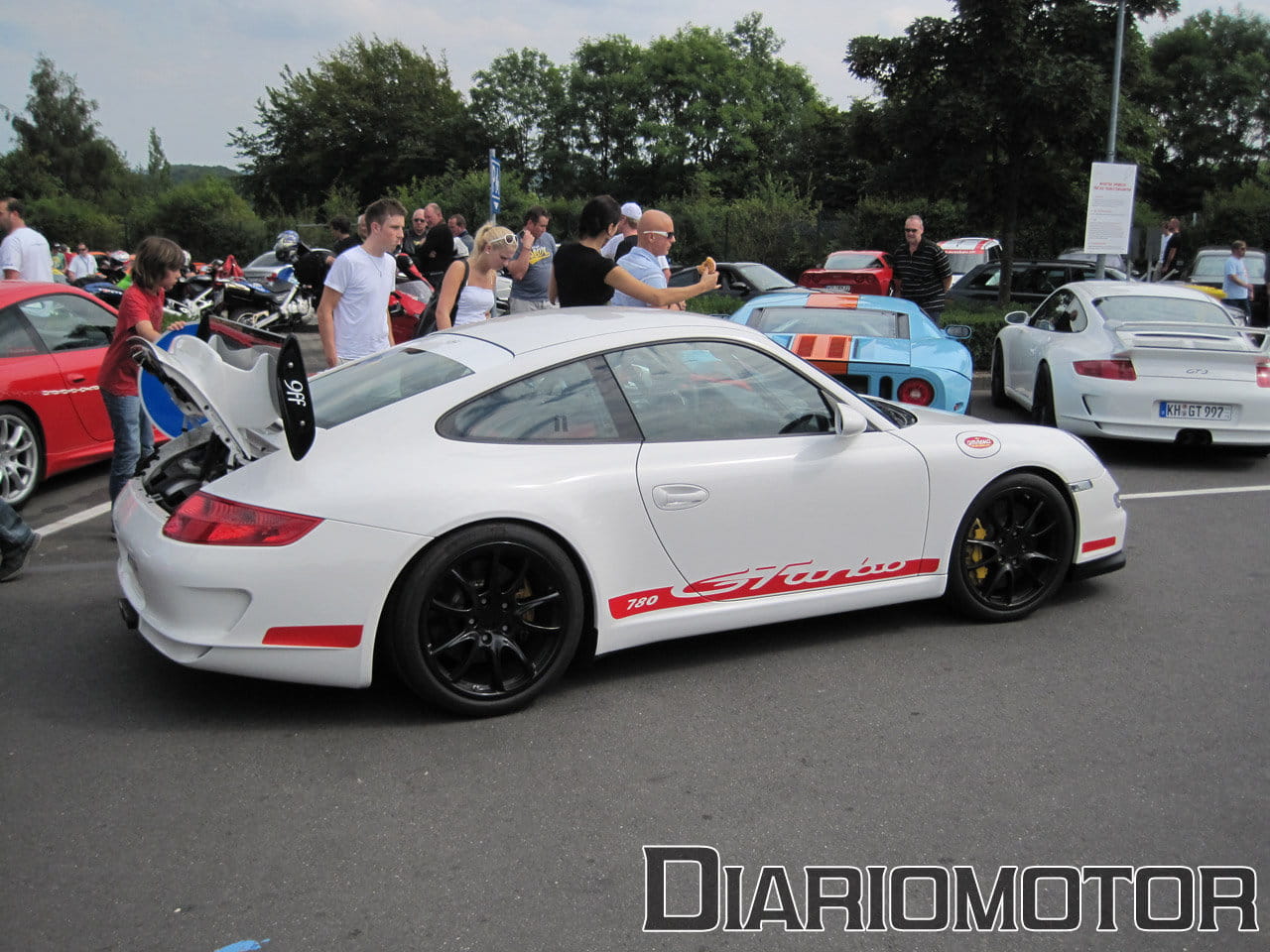 Si por algo destacaba el aparcamiento del circuito era por la enorme cantidad de Porsche 911 GT3 y BMW M3 que había, parecía que los regalaban con los cereales. Pero algunos ejemplares destacaban más que otros, como algunos 911 GT3 RS del paquete, un precioso 911 Carrera RSR de los años 70 en perfecto estado de conservación y un increíble 9ff GT Turbo 780. Esta salvaje preparación eleva la potencia del motor 3.6 bóxer a unos escalofriantes 780 CV, permitiendo un 0 a 100 km/h de tres segundos escasos y una punta de más de 370 km/h.