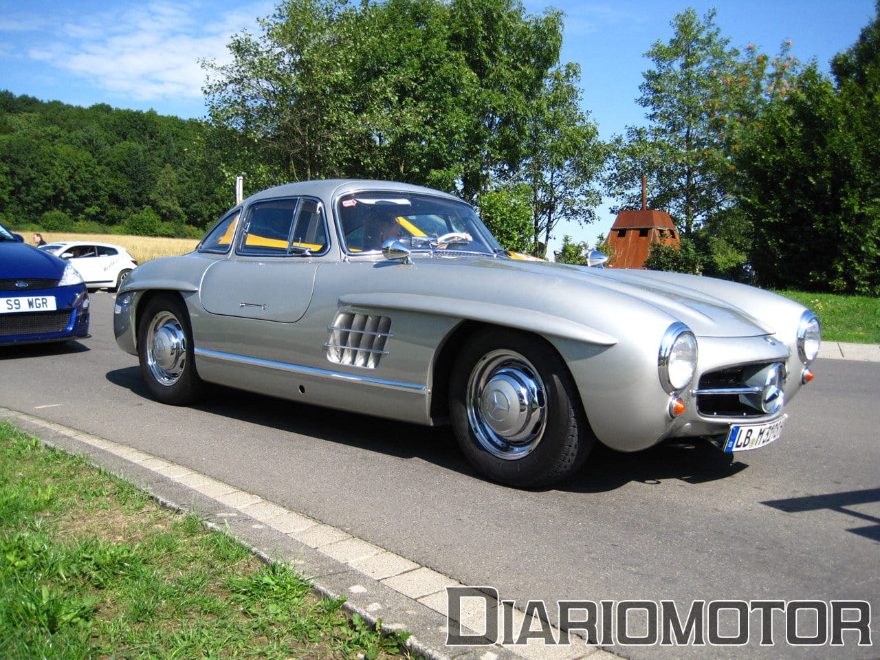 Llegamos pronto al circuito, antes de que abriesen, así que pudimos pasearnos por el aparcamiento. Los dos coches que esperaban en la entrada ya captaban todas las miradas: un Mercedes 300 SL de los años y un Porsche Carrera GT, ambos de color plateado y en un estado de conservación inmaculado. Aunque ya había visto algún Carrera GT, el 300 SL era el objetivo de todas las cámaras, y francamente pocos miraban al Porsche estando al lado un auténtico superdeportivo construído hace más de 50 años.