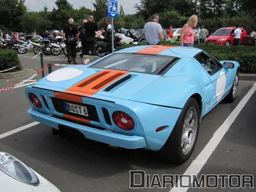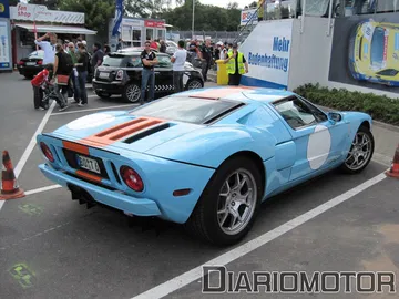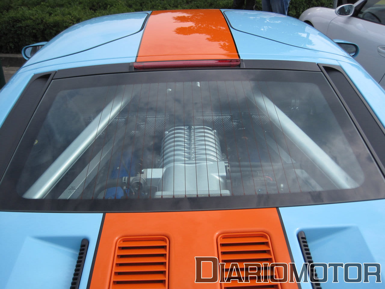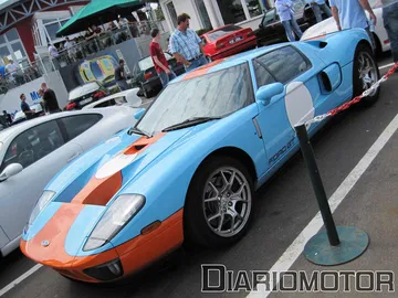 El Ford GT estaba parado en el aparcamiento y no lo ví moverse nada más que para cambiarse de sitio. Repasando fotos del día en Internet, no he encontrado ninguna foto, y un coche tan llamativo sería un buen blanco para los fotógrafos. Si entró al circuito fue para una sola vuelta. Este bajísimo superdeportivo lleva un motor 5.4 V8, sobrealimentado por un enorme compresor hasta lograr 550 CV de potencia. Es el típico coche para presumir en el aparcamiento y apenas rodar, no sea que se nos rompa.