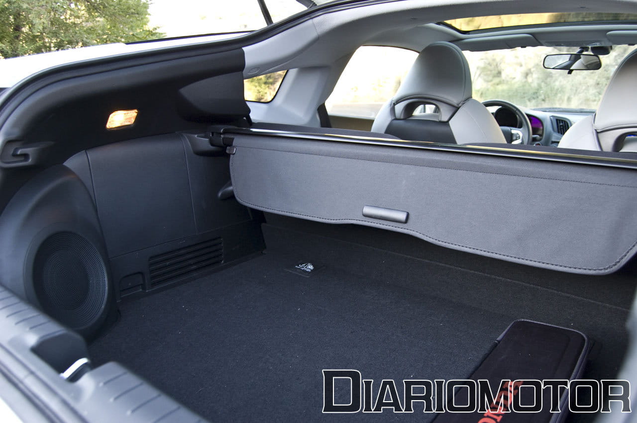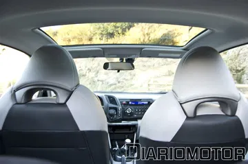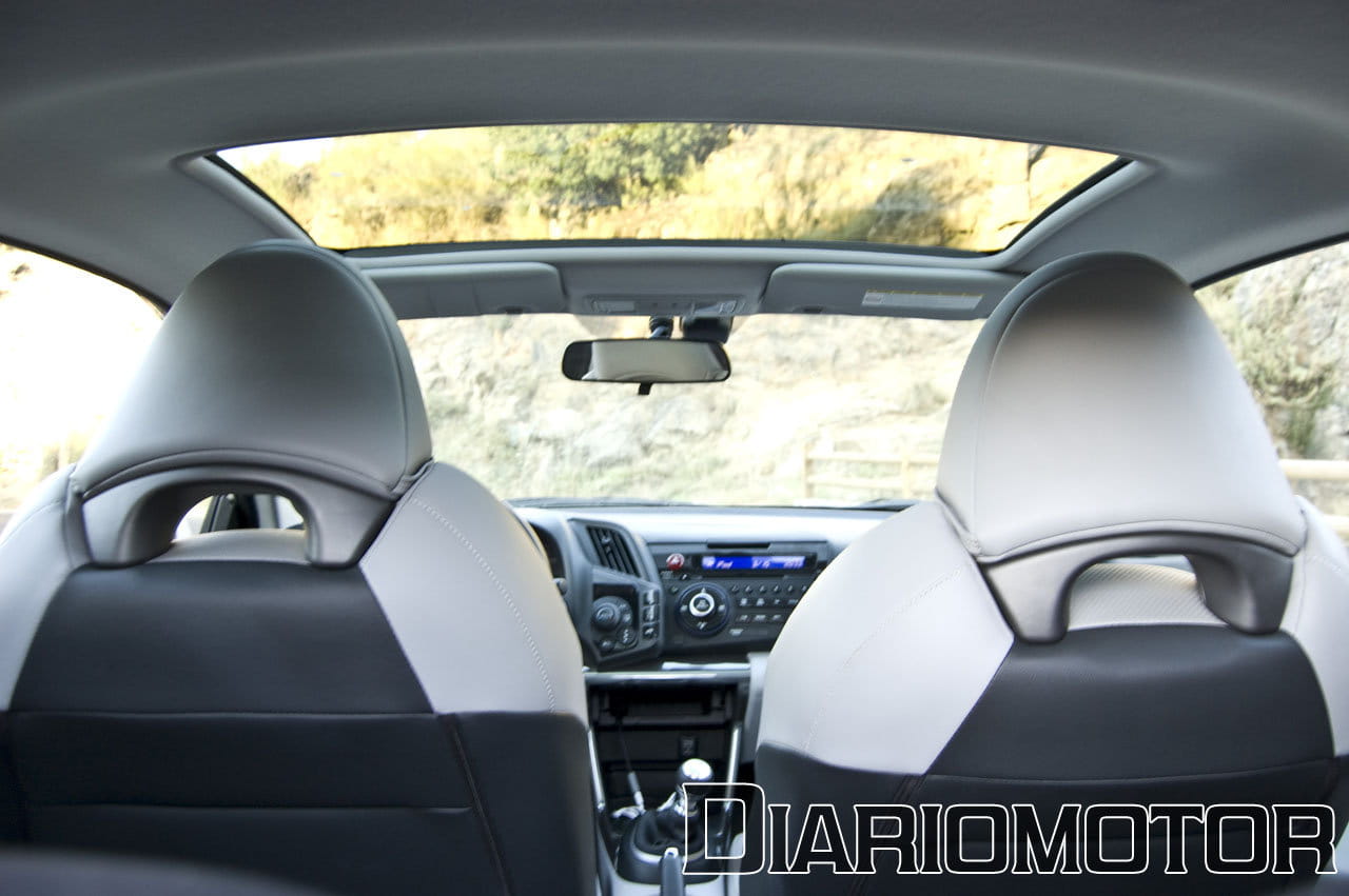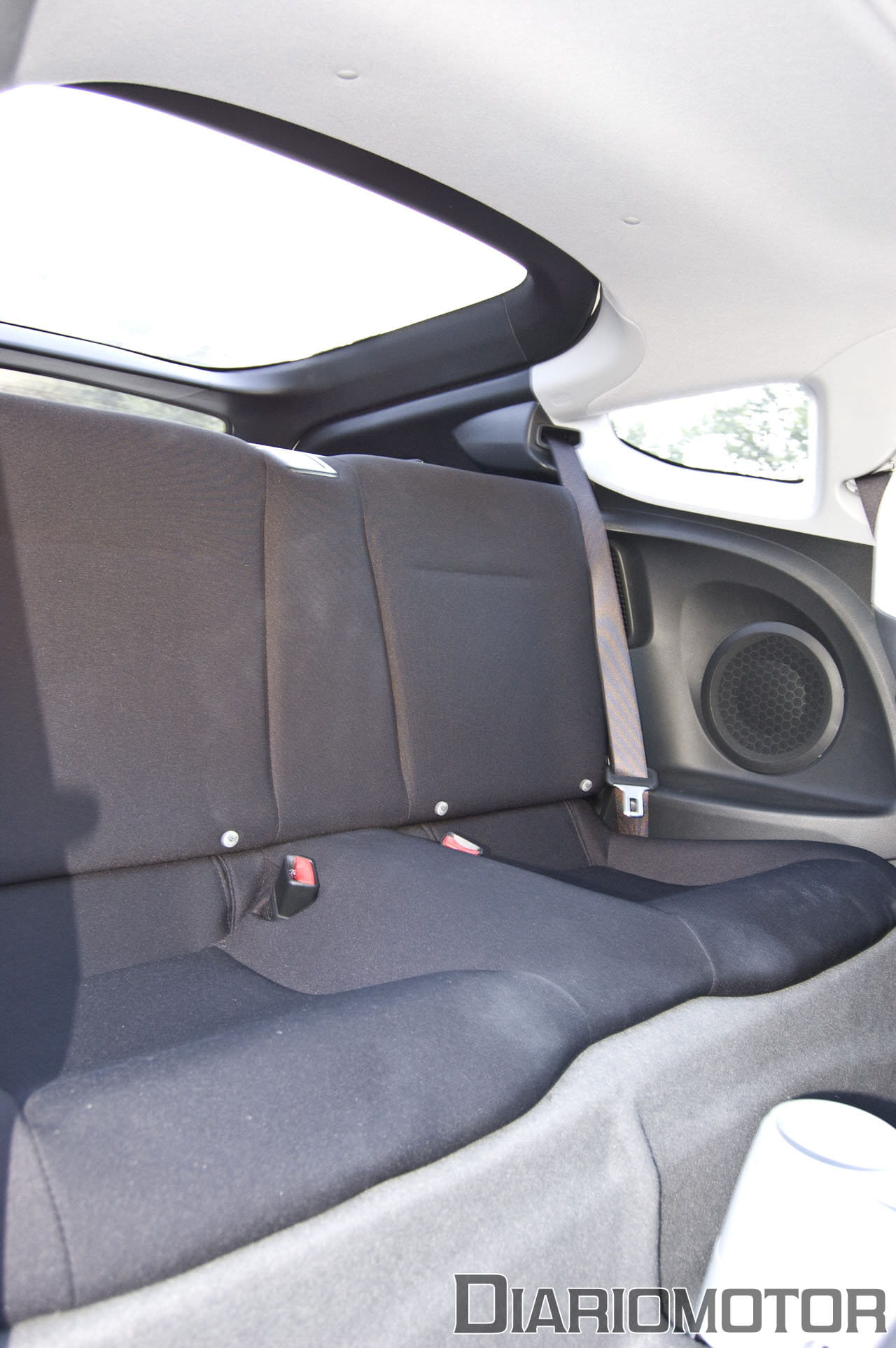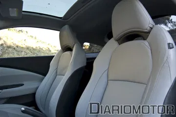 Nuestra unidad de pruebas contaba con los asientos de piel, de serie con el equipamiento GT Plus. Ambos asientos para el piloto y su acompañante son de carácter deportivo, con buena sujeción lumbar y reposacabezas fijo. Pese a la poca altura del techo, se dispone de bastante espacio libre hasta el techo, casi tanto como en cualquier compacto, dado que la base de los asientos va situada en una posición mucho más baja de lo que viene siendo habitual.