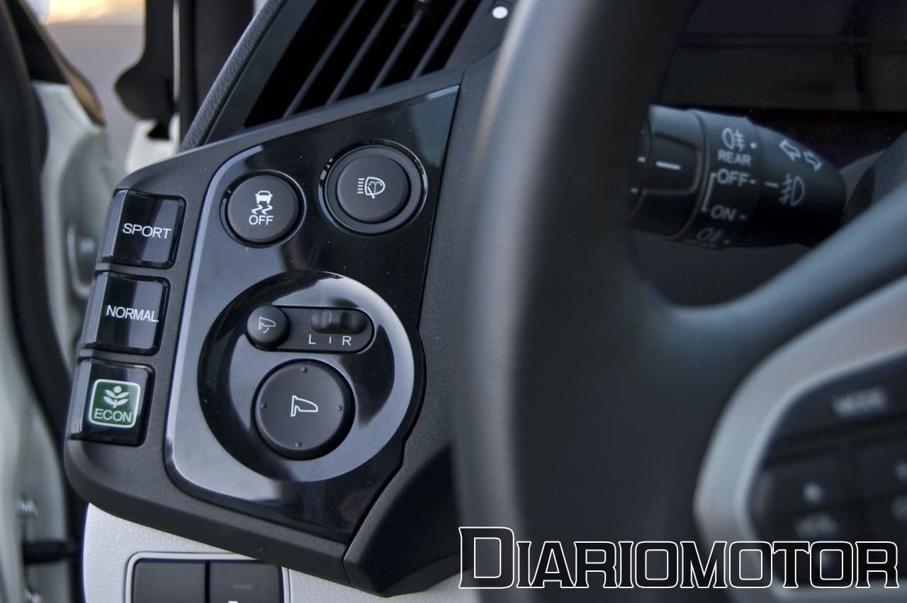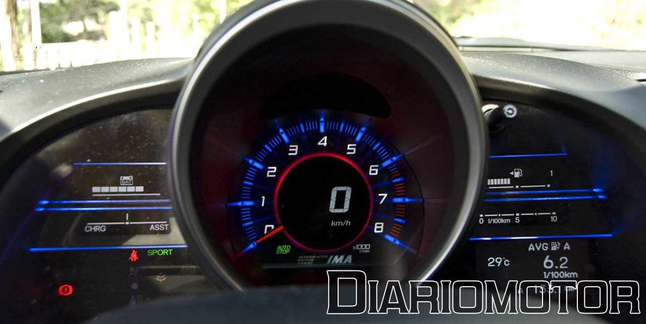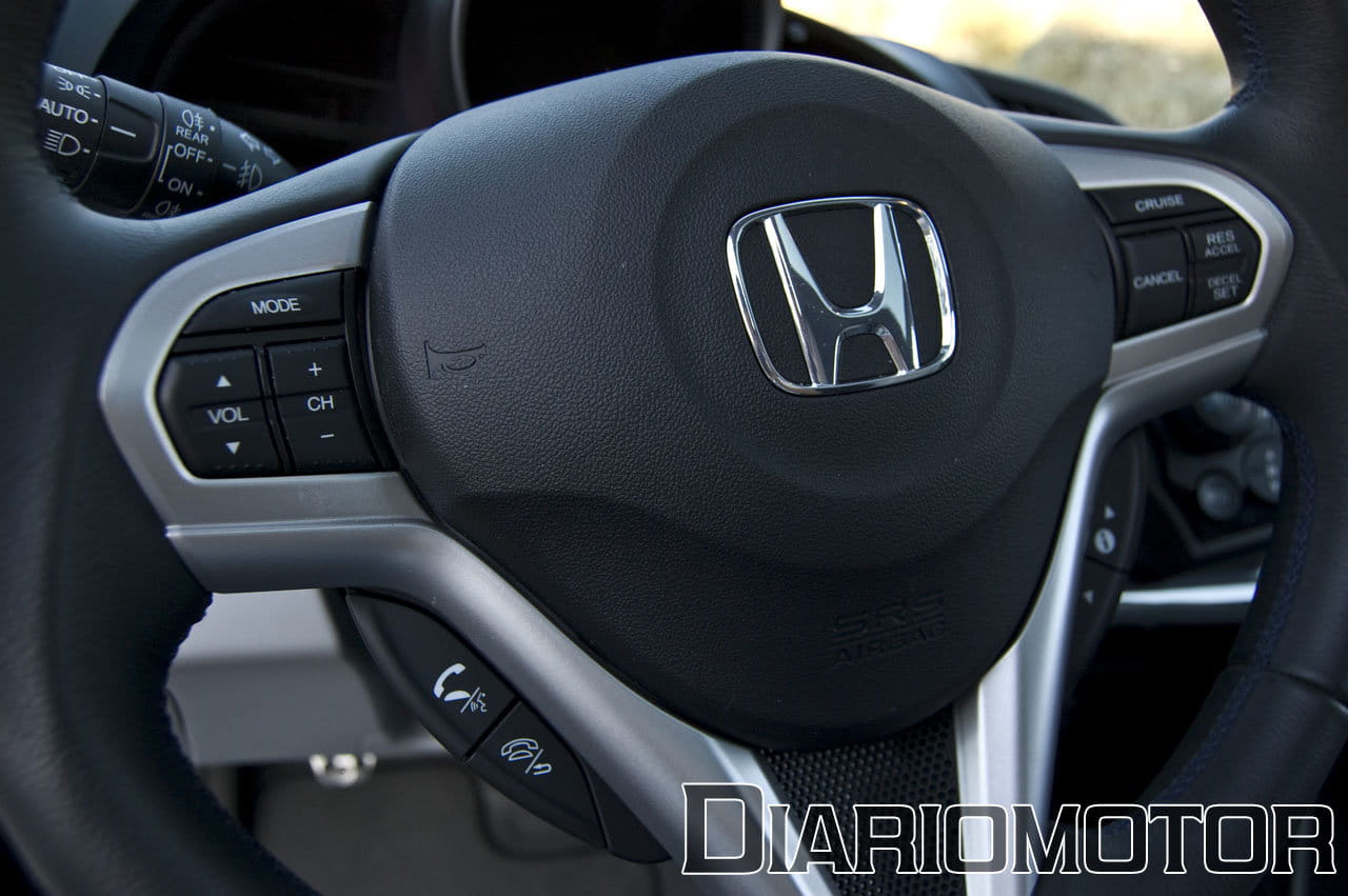 Una vez dentro y acomodado ya vas intuyendo que lo mejor del Honda CR-Z nos lo encontraremos cuando encendamos el contacto, el volante es agradable al tacto y dispone en sus radios de los típicos controles del equipo multimedia, el climatizador, el sistema de manos libres y el configurador del ordenador de a bordo, estos últimos por cierto pueden resultar un poco confusos al principio y su posición es un poco incómoda (están demasiado bajos y se accionan con los dedos por detrás del volante).