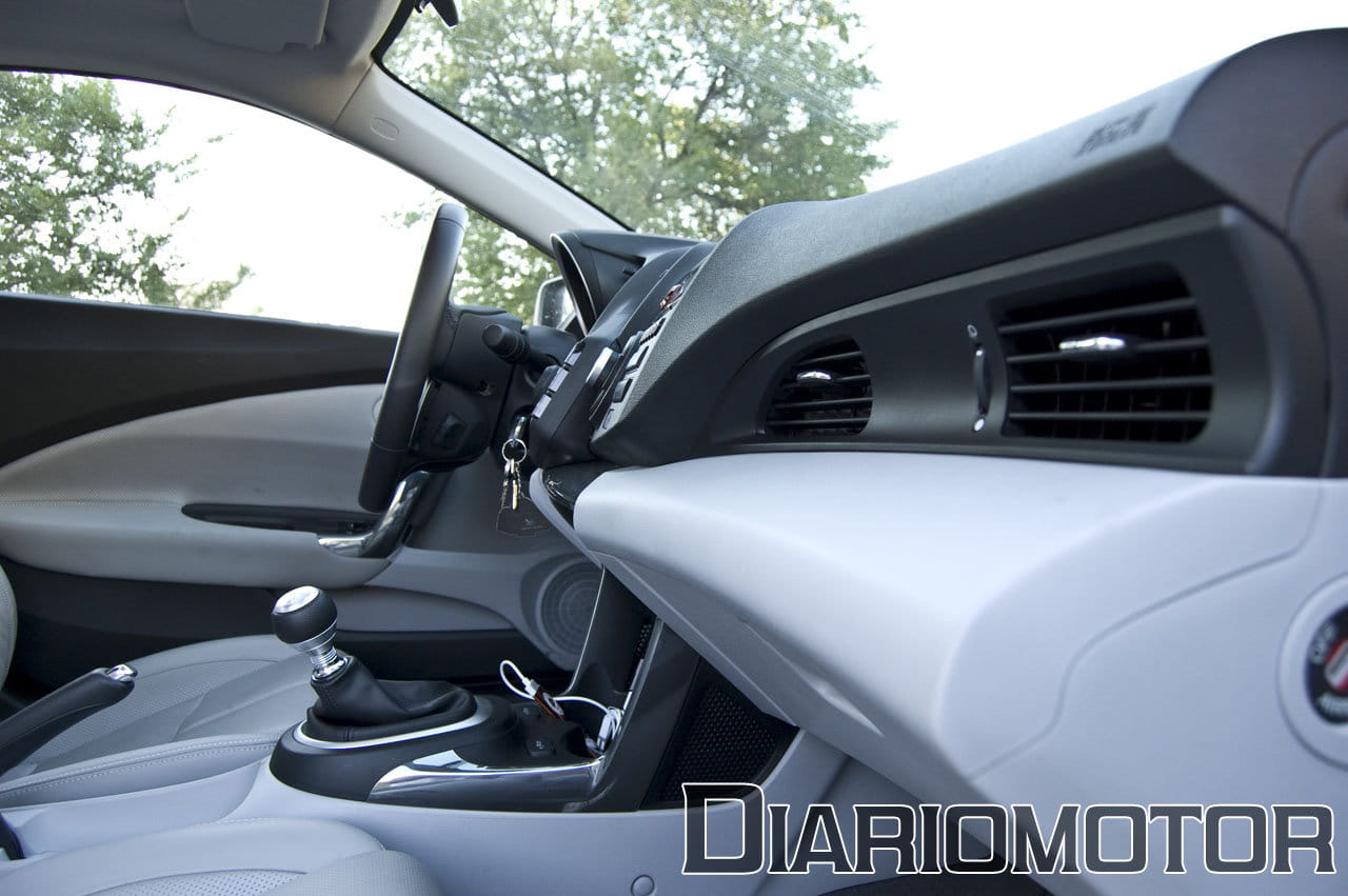 El salpicadero mezcla plástico duro rugoso y liso con dos tonos de color, en los paneles tapizados de piel e inserciones de aluminio para el pomo del cambio y los tiradores de las puertas. Dentro de una aparente sencillez de materiales da buena sensación de calidad y durabilidad. Los ajustes en cualquier caso son impecables. Para tratarse de un vehículo deportivo hay que destacar que dispone de bastante espacio para dejar objetos bajo el salpicadero en la consola central y en las puertas.