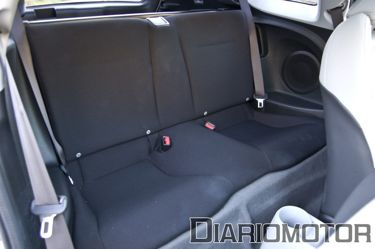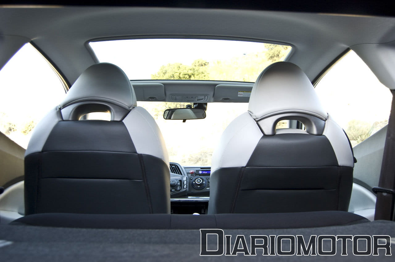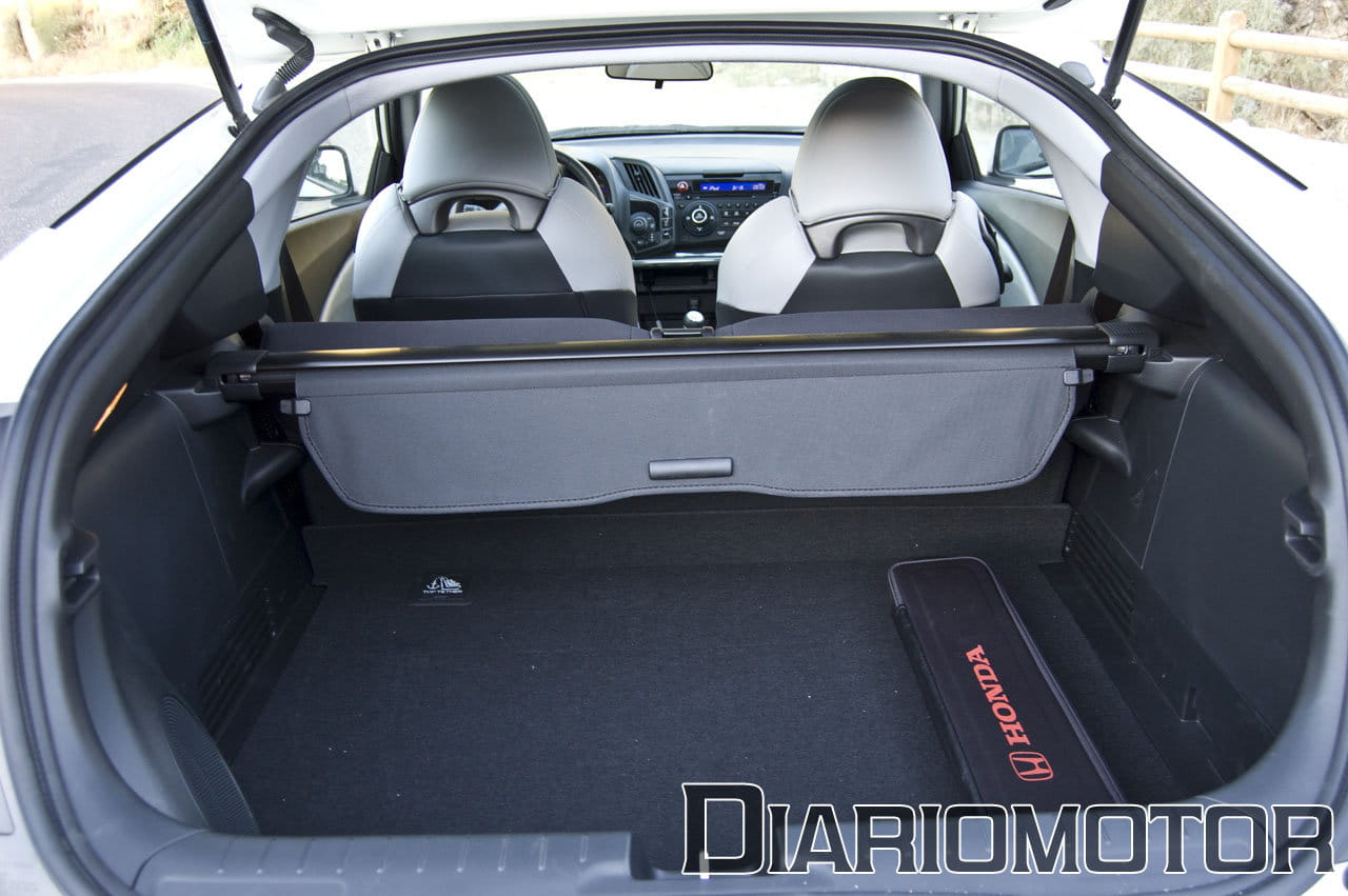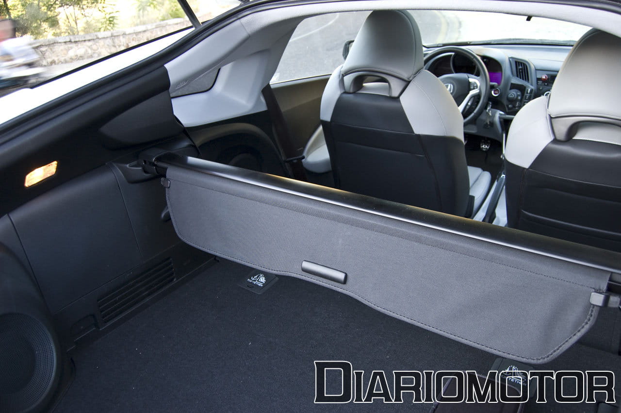 Como comparación, el Honda CR-Z no dispone de más espacio ni para las piernas ni de altura libre al techo en las plazas traseras que un Audi TT o un Peugeot RCZ. No sabemos si esto será común en toda la gama o únicamente con los asientos de piel del acabado GT Plus, pero el acceso a las plazas traseras únicamente es posible a través de la puerta del acompañante, dado que su asiento es el único que cuenta con un tirador para abatir el respaldo.