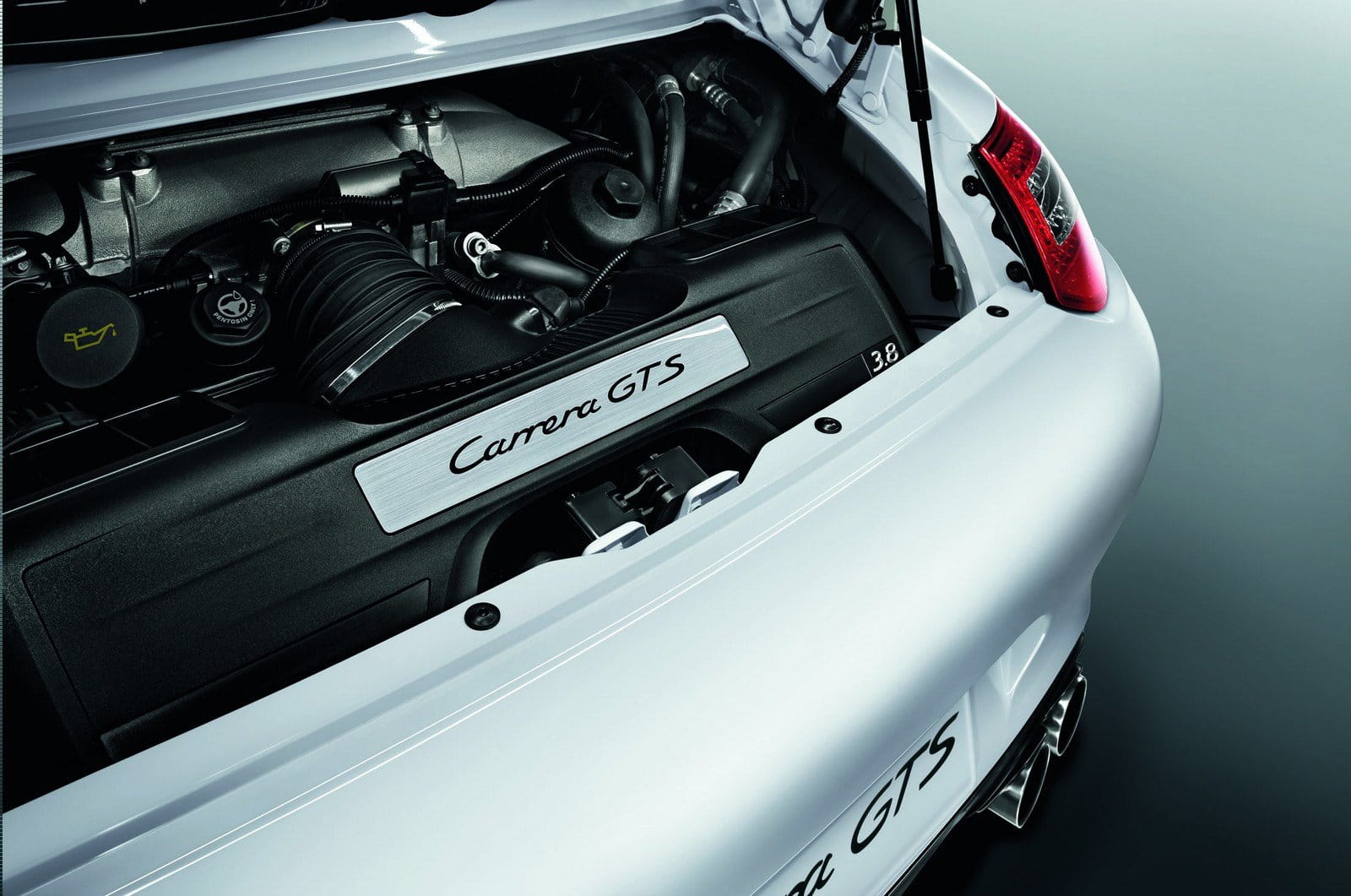 El motor de 3.8 litros ha sido optimizado respecto al Carrera S, entregando ahora esos 408 CV y 420 Nm de par máximo a 4.200 rpm. Además, su sonido todavía estará más logrado, gracias a una nueva cámara de resonancia y a un escape deportivo distinto. Con el tradicional cambio manual de 6 velocidades, el Carrera GTS puede alcanzar los 306 Km/h de velocidad máxima (en circuito o en las autopistas alemanas) y acelerar de 0 a 100 Km/h en 4.3 segundos.