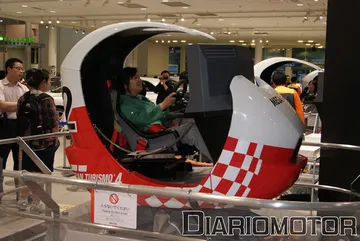 Las otras 2 “atracciones” se tratan de simuladores. En 2 máquinas tienen el GT4 con 3 pantallas, volante, backet y pedales sobre una plataforma que se mueve, y en la que juegas a dar 3 vueltas al circuito de Fuji Speedway. En las otras 2 restantes, se intenta demostrar las bondades de los sistemas de seguridad activa de Toyota jugando a conducir un 4×4, primero sin ayudas y después con ellas. Debo decir que he jugado a bastantes simuladores y me pareció demasiado forzado el como se iba el coche sin ayudas.
