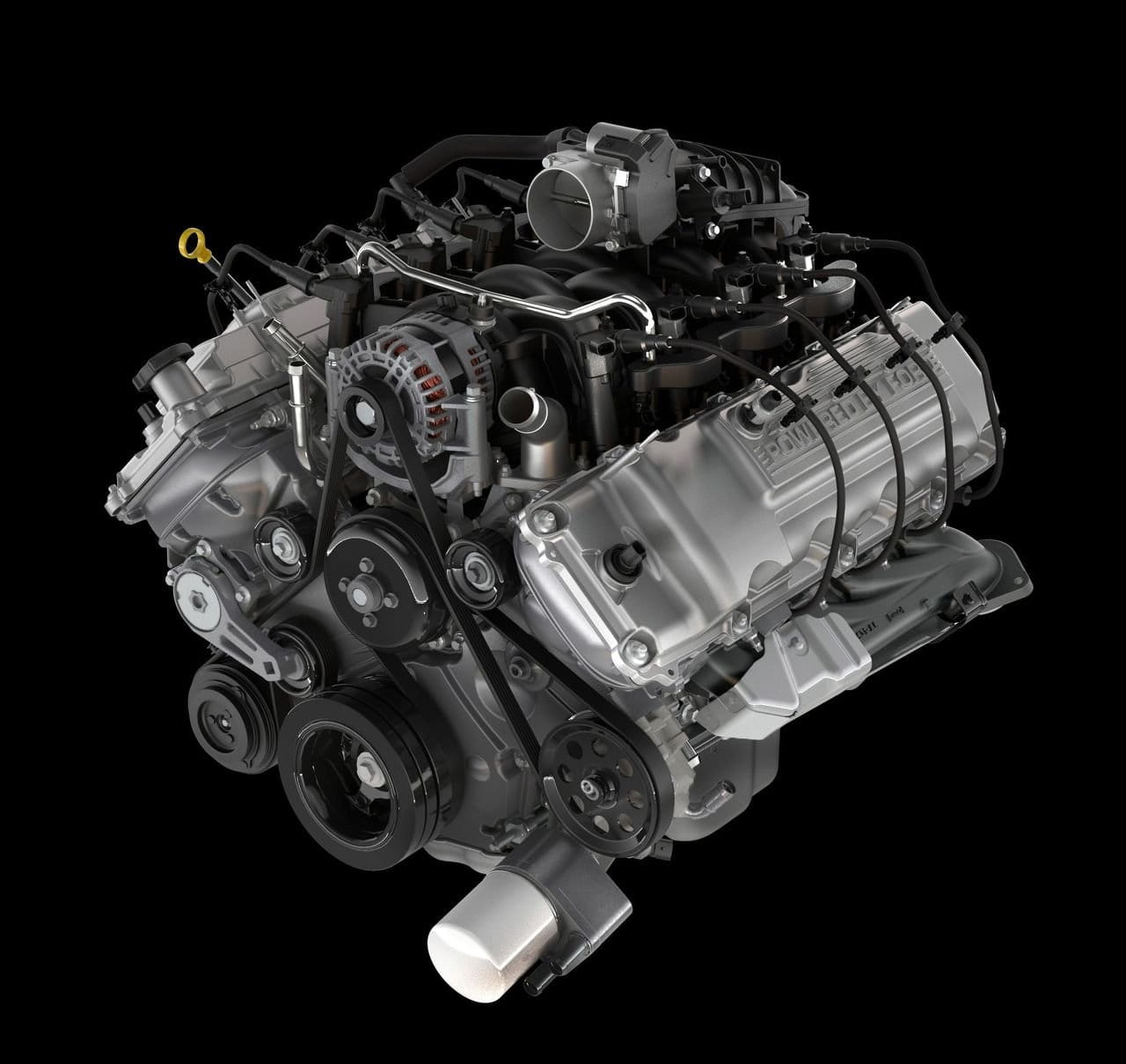 Este motor atmosférico fue estrenado por primera vez en el Ford Mustang, donde era capaz de lograr un consumo de sólo 7.6 l/100 km en autopista. En las F-150 el motor pierde 5 CV, por lo que se queda en 302 CV a 6.500 rpm y 377 Nm de par motor. Se espera que sea el pick-up con menor consumo de combustible y será capaz de arrastrar 2.750 kg. Supondrá el motor de acceso a la gama y será ideal para aquellos que no busquen un vehículo para trabajos pesados, y le den un uso más recreacional.