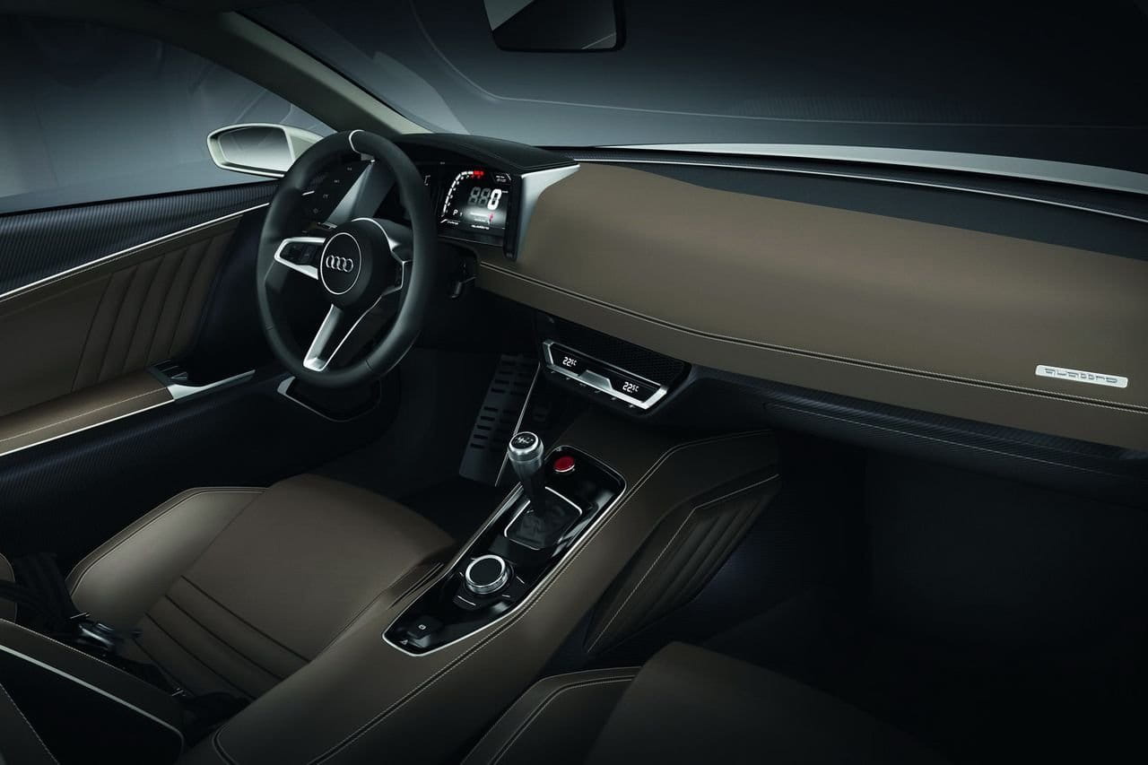 El hecho de que el prototipo tenga sus raíces en el chasis del Audi RS5 – uno de los vehículos más deportivos de Audi – sienta precedentes para una dinámica superior, sin contar la dieta de adelgazamiento y dimensiones. Frente a los más de 4.5 metros del RS5, el Audi Quattro Concept mide 4.28 metros de largo, 1.86 metros de ancho y 1.33 metros de largo. Su batalla ha sido recortada en 150 mm y ahora es de 2.600 mm. En la carrocería se ha empleado de manera extensiva el aluminio, aunque zonas como el capó o el techo son de fibra de carbono.