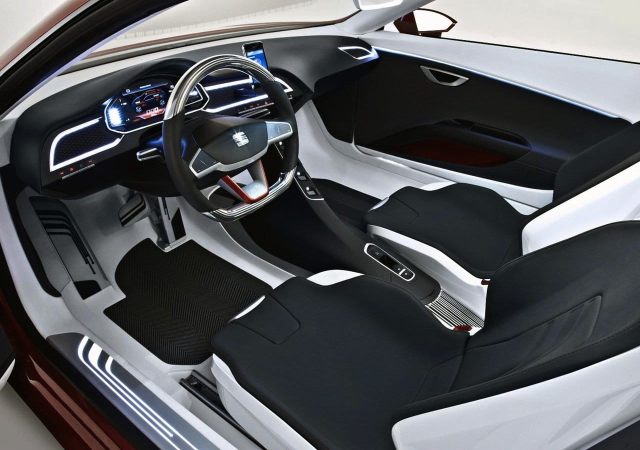 Sus ópticas siguen siendo LED en exclusiva pero ahora adoptan unas formas más triangulares, al igual que el faldón delantero que se acerca más a una posible realidad. En la zaga el difusor también alcanza la forma de tres ángulos. Aunque su interior no está a la vista Seat nos dice que cuenta con cuatro plazas amplias, en formación 2+2, de las cuales las traseras pueden abatirse completamente en plano. Un coche de este tamaño lógicamente no cuenta con gran maletero por defecto.
