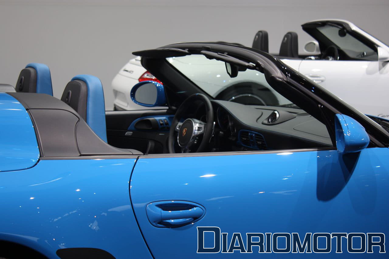 Cuando ví por primera vez el Porsche Speedster desde lejos pensé, ¿qué hace un Gordini en el stand de Porsche? Definitivamente, no estoy acostumbrado a ver un Porsche en ese color que podemos también llamarlo vulgarmente azul pitufo pero tampoco puedo decir que le siente mal al coche. La receta es fácil, sobre la base de un 911 se estiliza la parte posterior sustituyendo las dos mini-plazas por dos abultaciones de chapa para parecerse al Speedster original, todo ello aderezado con unos faldones laterales, delanteros y traseros específicos.