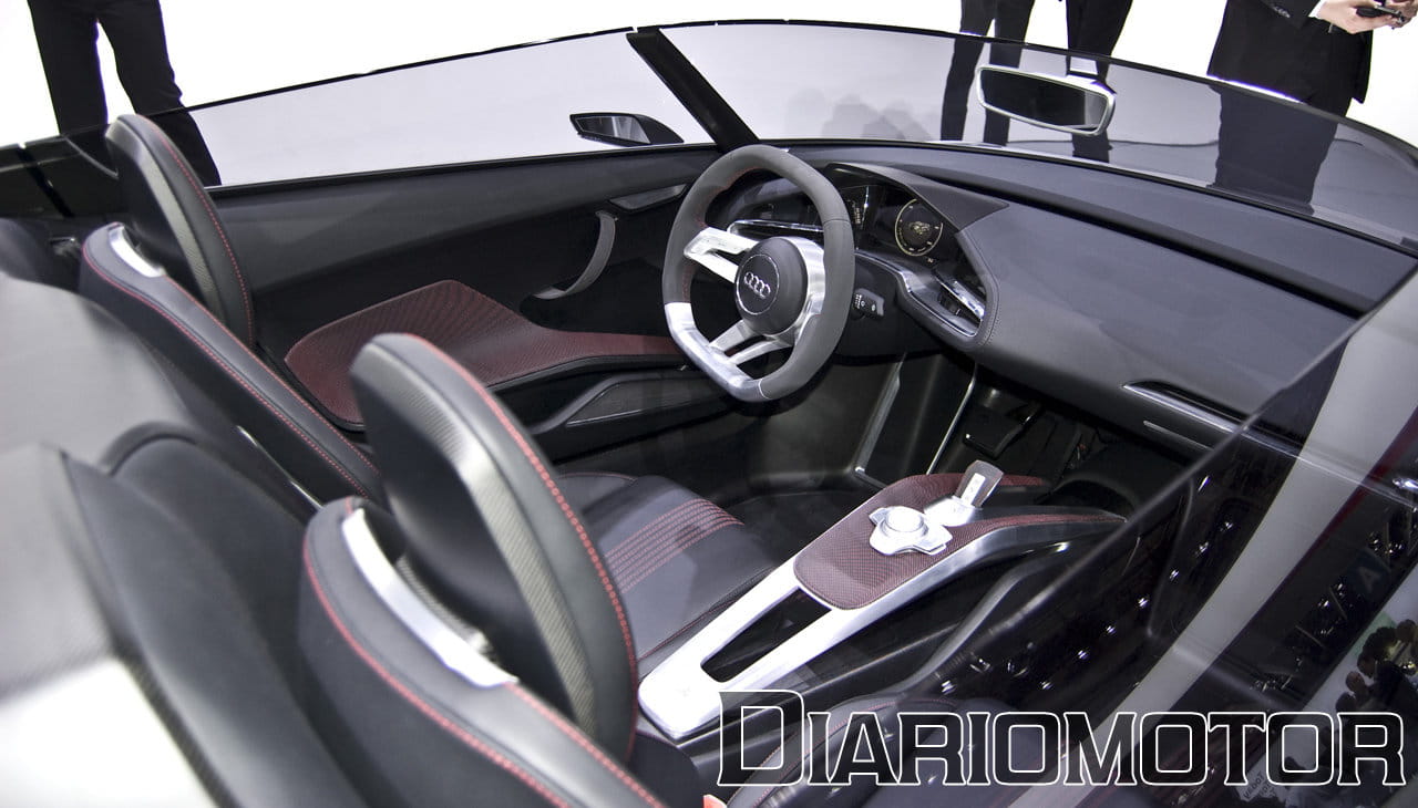 El Audi e-Tron Spyder Concept es un deportivo biplaza extremadamente pequeño, más corto incluso que un Audi TT y muy bajo por su ausencia de techo y la existencia de un reducido parabrisas frontal que se prolonga a lo largo de la línea lateral. Goza de un espíritu muy retro, al más puro estilo speedster, ¿se estarán pensando algo parecido para el Audi R8? Porsche ya lo ha hecho y de una forma u otra Mercedes-Benz (con McLaren) ya lo hizo también…
