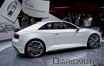 Sin más toques retro que los guiños al viejo Ur-Quattro, es cierto que el Audi Quattro Concept se muestra moderno y encajaría perfectamente como el “Scirocco” de Volkswagen. Pese a su condición de vehículo conceptual, se trata de uno de los vehículos presentados en París que más público (en realidad prensa y profesionales de la industria del automóvil) a su alrededor.