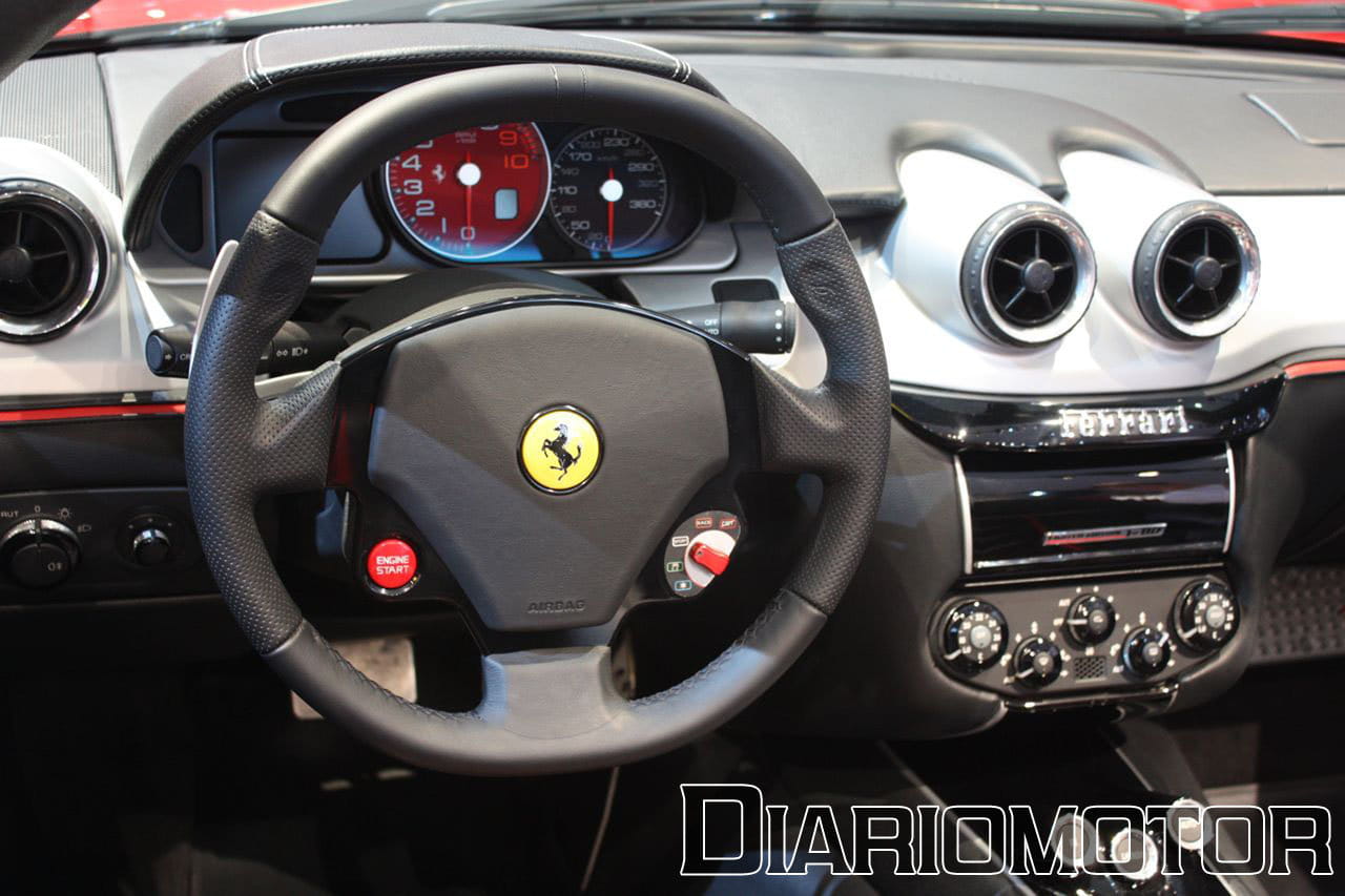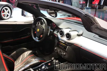 Gracias a ellos podemos echar un vistazo al interior, que no había sido desvelado en las fotos oficiales previas al Salón. Básicamente es el mismo que en el 599 GTB, aunque hay pequeños cambios en los materiales presentes en la consola central y una redistribución de los mandos situados en la teórica zona del freno de mano (que es de botón).