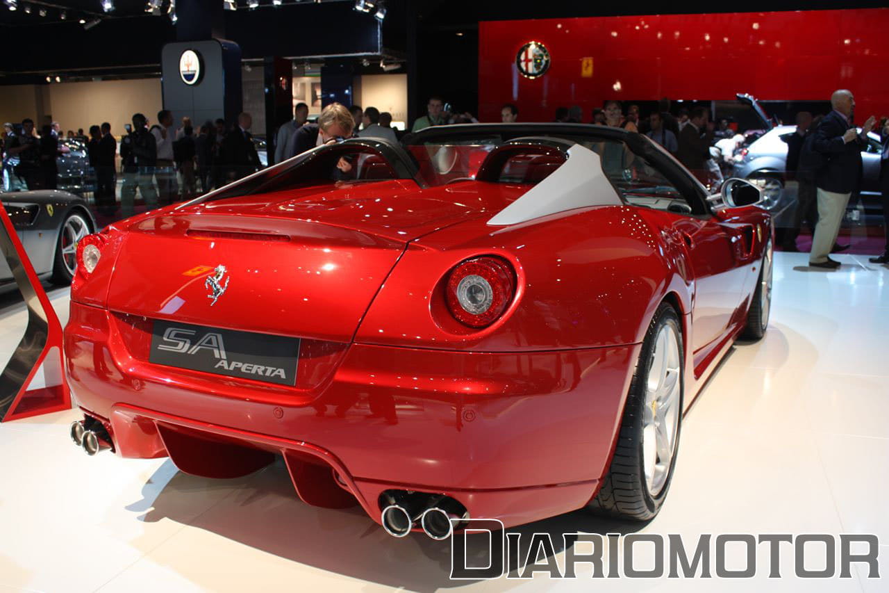 La última joya de Maranello ha sido presentada en el Salón de París. Se trata del Ferrari SA Aperta, la versión descapotable del Ferrari 599 GTB cuyos primeros datos ya vimos hace unos días. Ferrari es de las pocas marcas que puede permitirse llevar al Salón un modelo sin más intención que la de deleitar el público, puesto que las 80 unidades que se fabricarán ya tienen dueño.