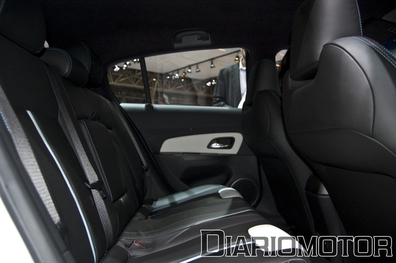 El prototipo expuesto en París del Chevrolet Cruze Hatchback lucía tapicería de piel y una combinación de colores en paneles y asientos de color blanco y negro y costuras azules. Esta calidad de materiales y acabados no será algo habitual en el futuro Chevrolet Cruze Hatchback de producción, aunque sí nos puede ir dando una idea de como podrían ser los modelos tope de la gama.