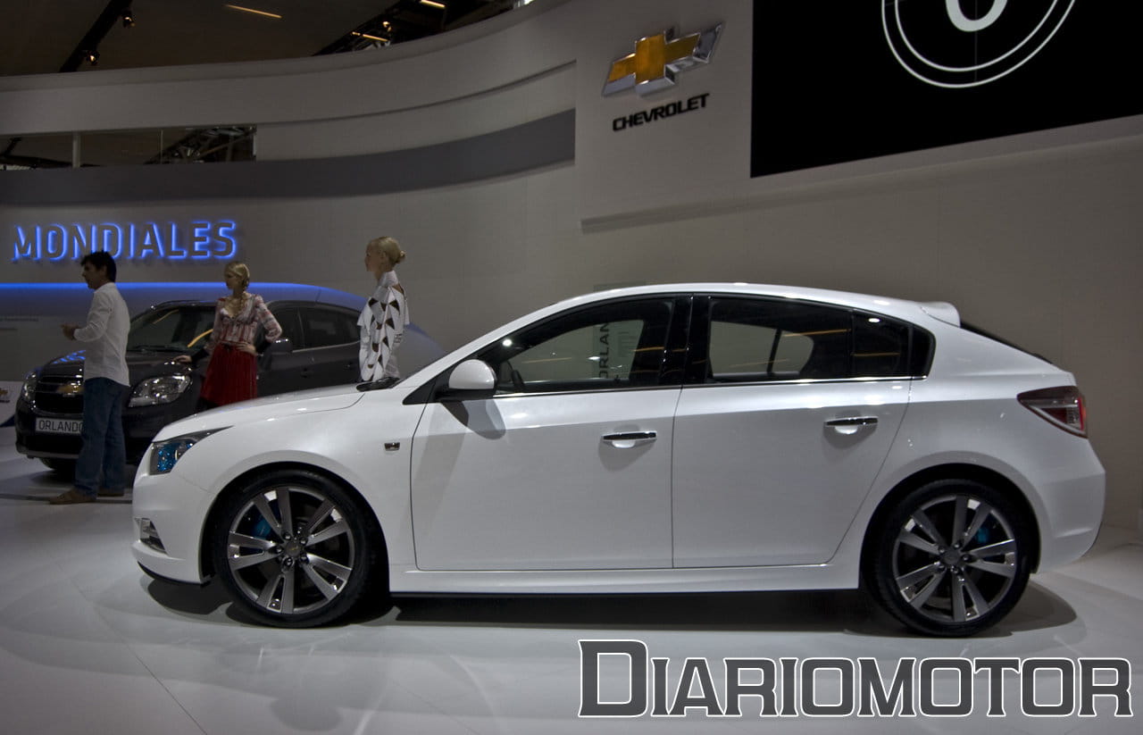 En el stand de Chevrolet en el Salón de París se mostró como primicia mundial el prototipo del Chevrolet Cruze Hatchback, que aparentemente define los rasgos de este nuevo compacto. A excepción de los grupos ópticos con LED e iluminación azulada y unas llantas de 19” con gomas un tanto desproporcionadas (245/40 ZR19), el resto perfectamente podría encajar en el futuro modelo de producción que se presentará en los próximos años para sustituir a los viejos Lacetti heredados de Daewoo.