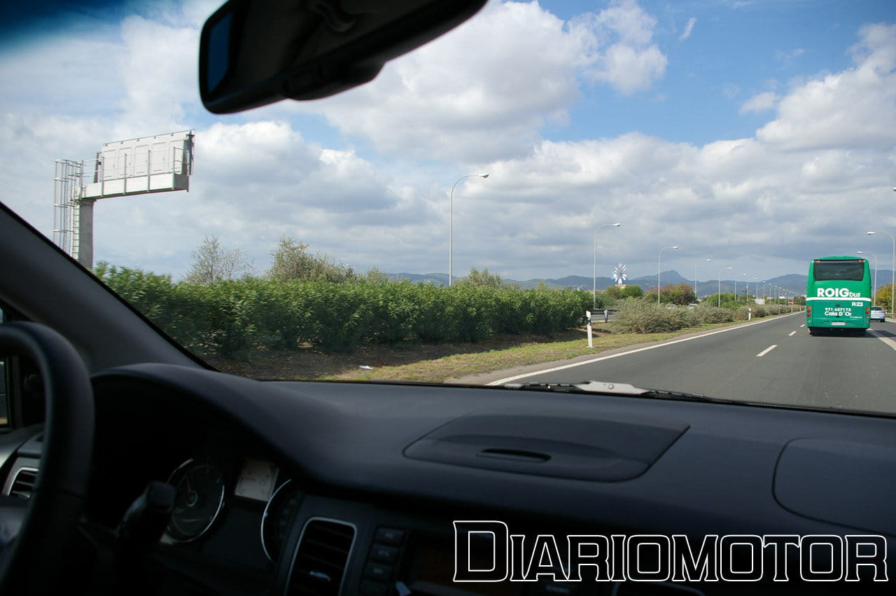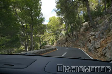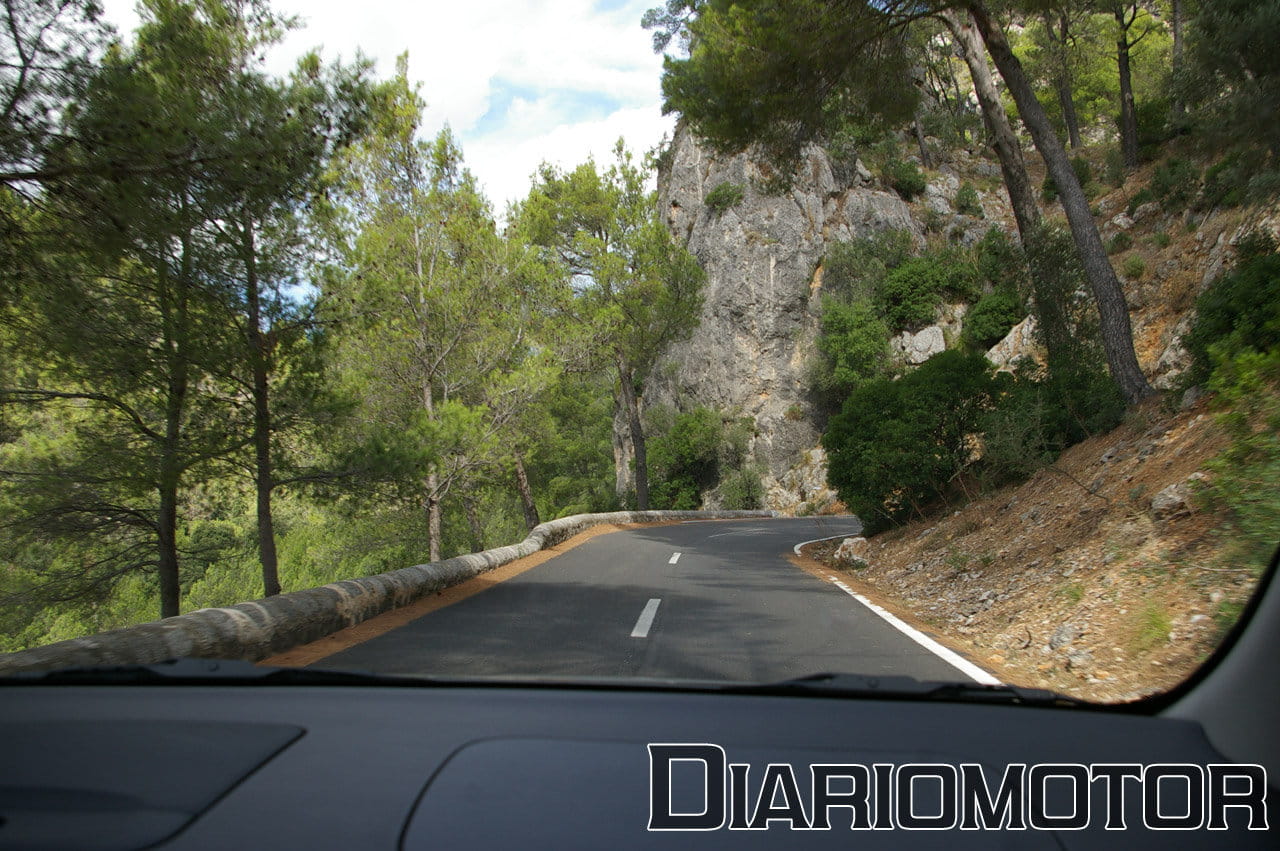 Lo primero que advertimos es que es un coche muy silencioso, se puede mantener una conversación a 140 km/h sin tener que levantar la voz. Vamos muy cómodos, y los baches se filtran poco al habitáculo. El consumo medio en una ruta ascendente de unos 20 km ronda los 7.5 l/100 km. La diversión comienza cuando abandonamos la autopista y tomamos una carretera provincial que asciende al macizo montañoso donde se encuentra el monasterio de Lluc.