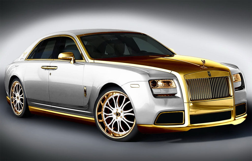 ¿Y qué es lo que tenemos aquí? Pues lujo en la más absoluta desproporción. El color exterior se entremezcla con numerosos detalles dorados por toda la carrocería, como en parilla delantera, espejos retrovisores, llantas o capó. De hecho, para todas esas partes se usa oro de verdad de 24 kilates, nada de falsas imitaciones.