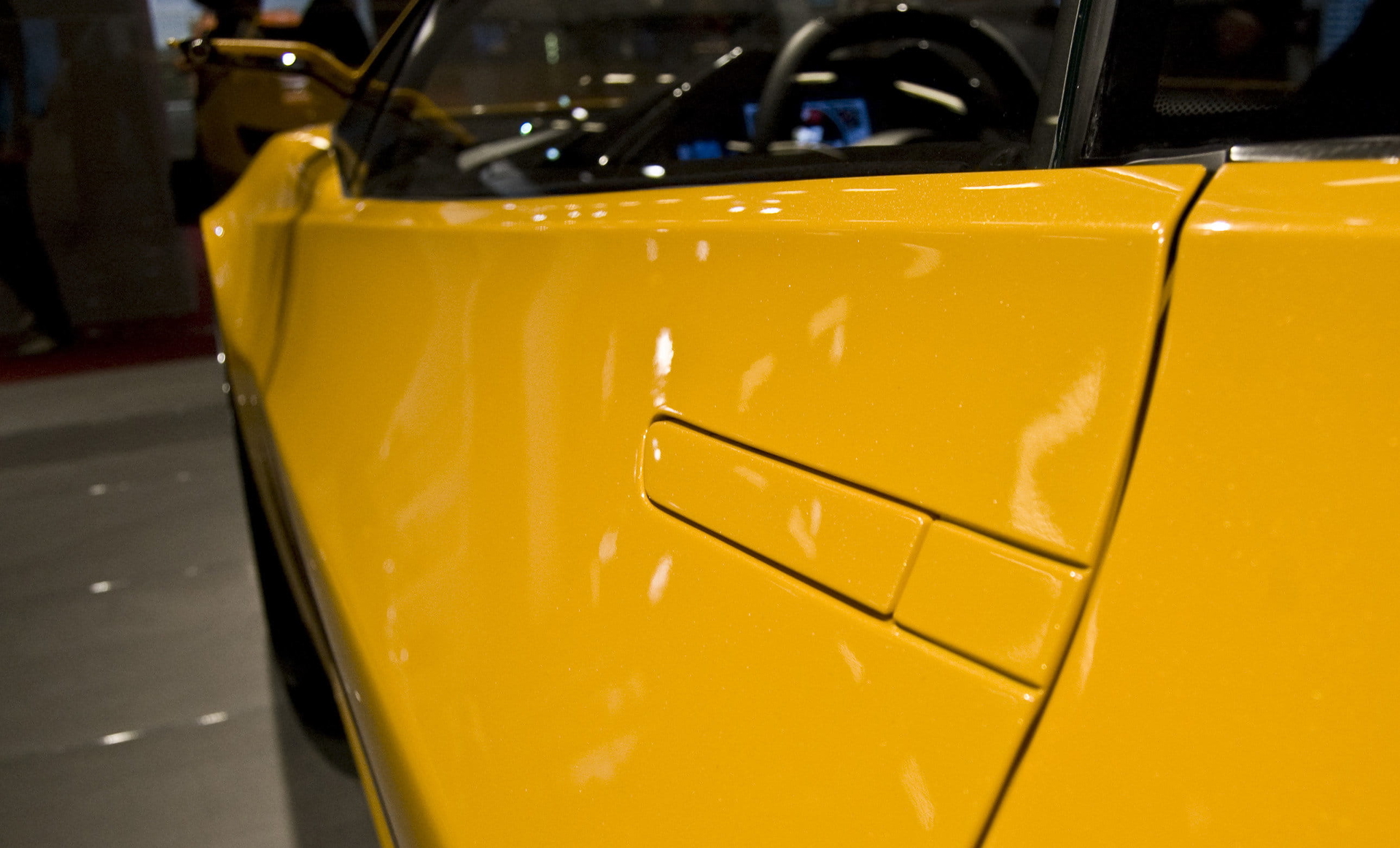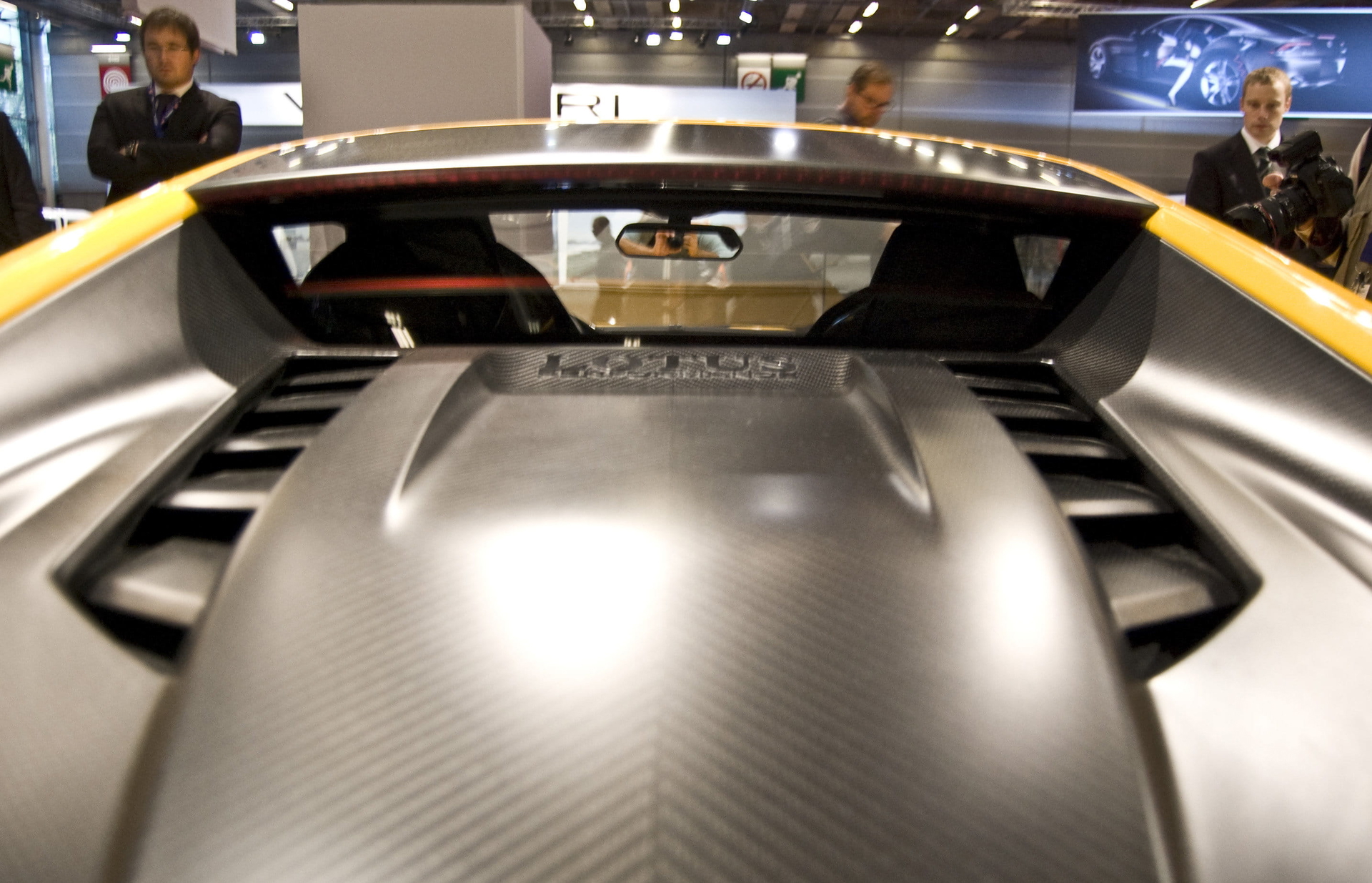 En directo el Lotus Elan es todo exotismo. Como sus congéneres presentados en París ahí están sus grandes entradas de aire, su frontal afilado con faros achinados, la ausencia de retrovisores y la preciosa trasera que sólo un deportivo de motor trasero central podría tener. Las puertas carecían de tiradores, o al menos de tiradores que sobresalgan de la carrocería.