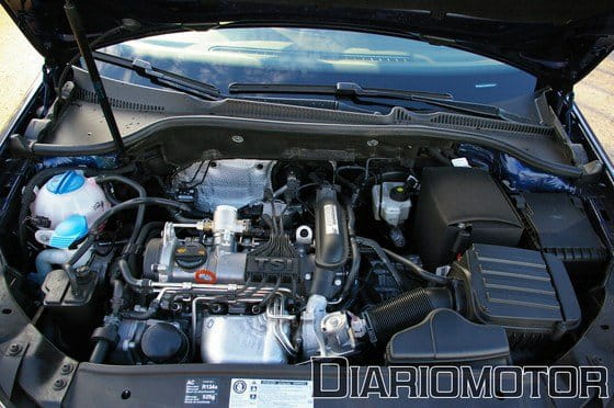 A la hora de los adelantamientos en carreteras de doble sentido, en primer lugar debemos advertir que no llevamos un coche demasiado potente (léase no apurar demasiado), pero pisando con decisión la DSG se situará en su zona de potencia óptima y saldremos con fuerza por detrás de ese camión lento. El sonido del motor al acelerar no es particularmente bonito, y está muy amortiguado por el aislamiento acústico del habitáculo y del propio capó.