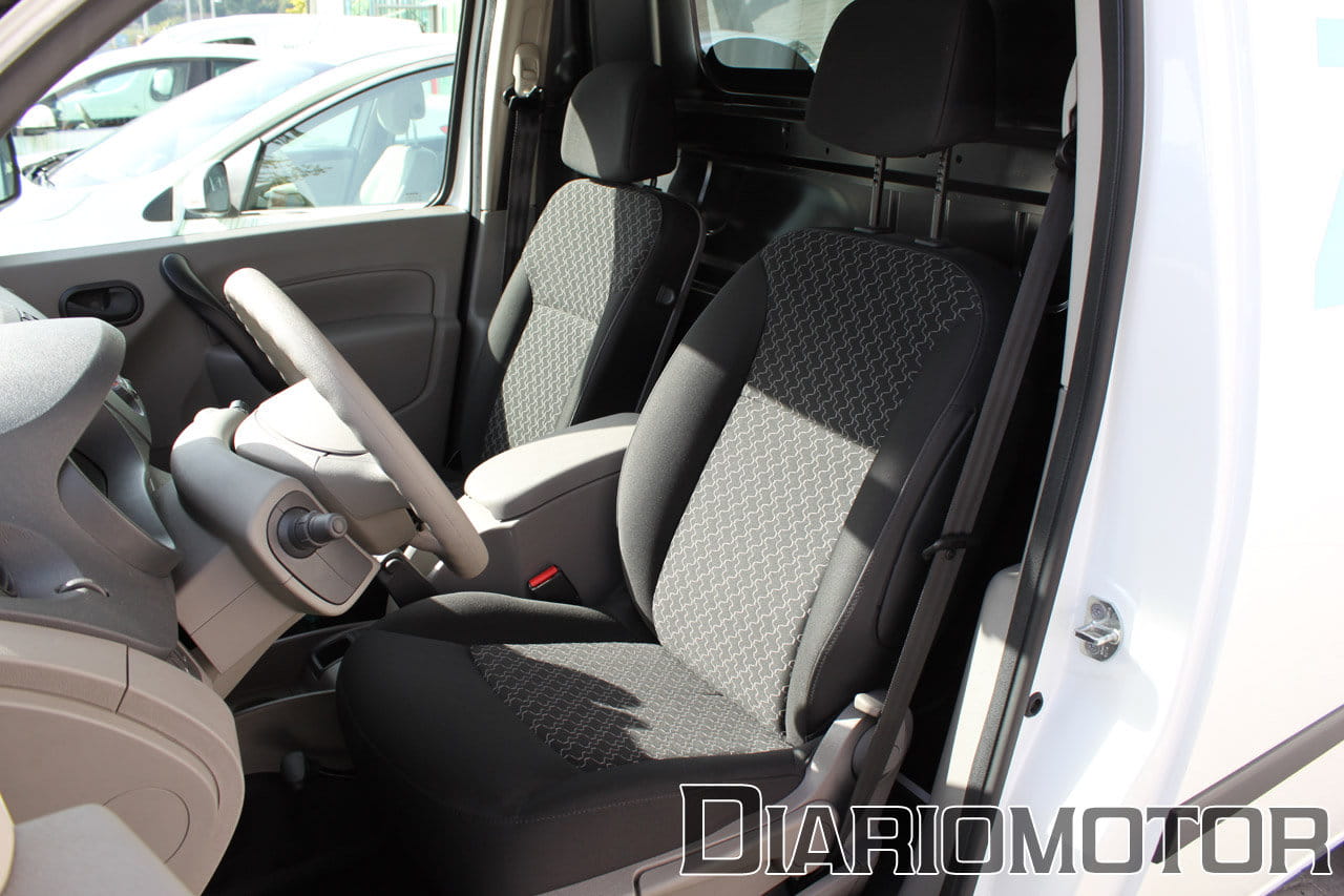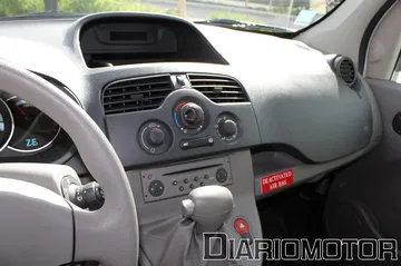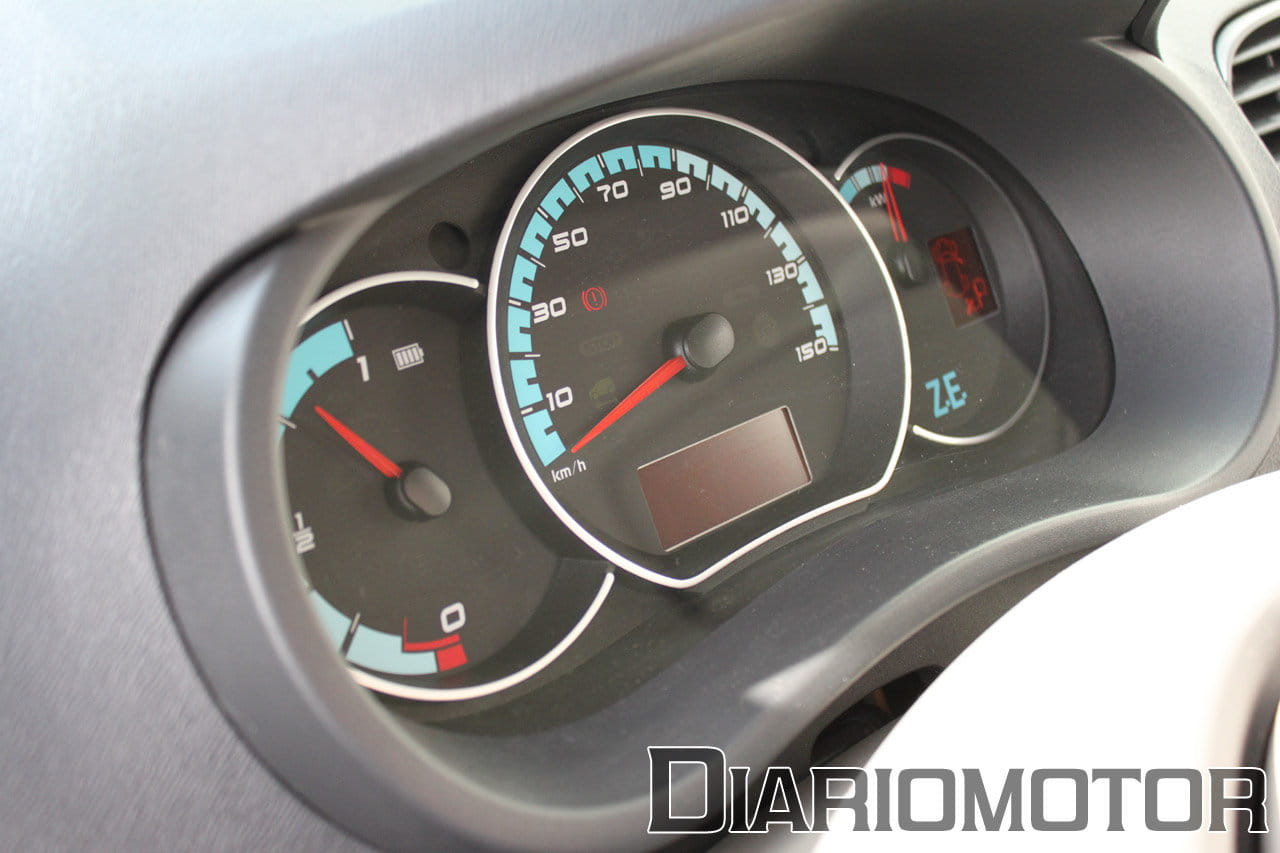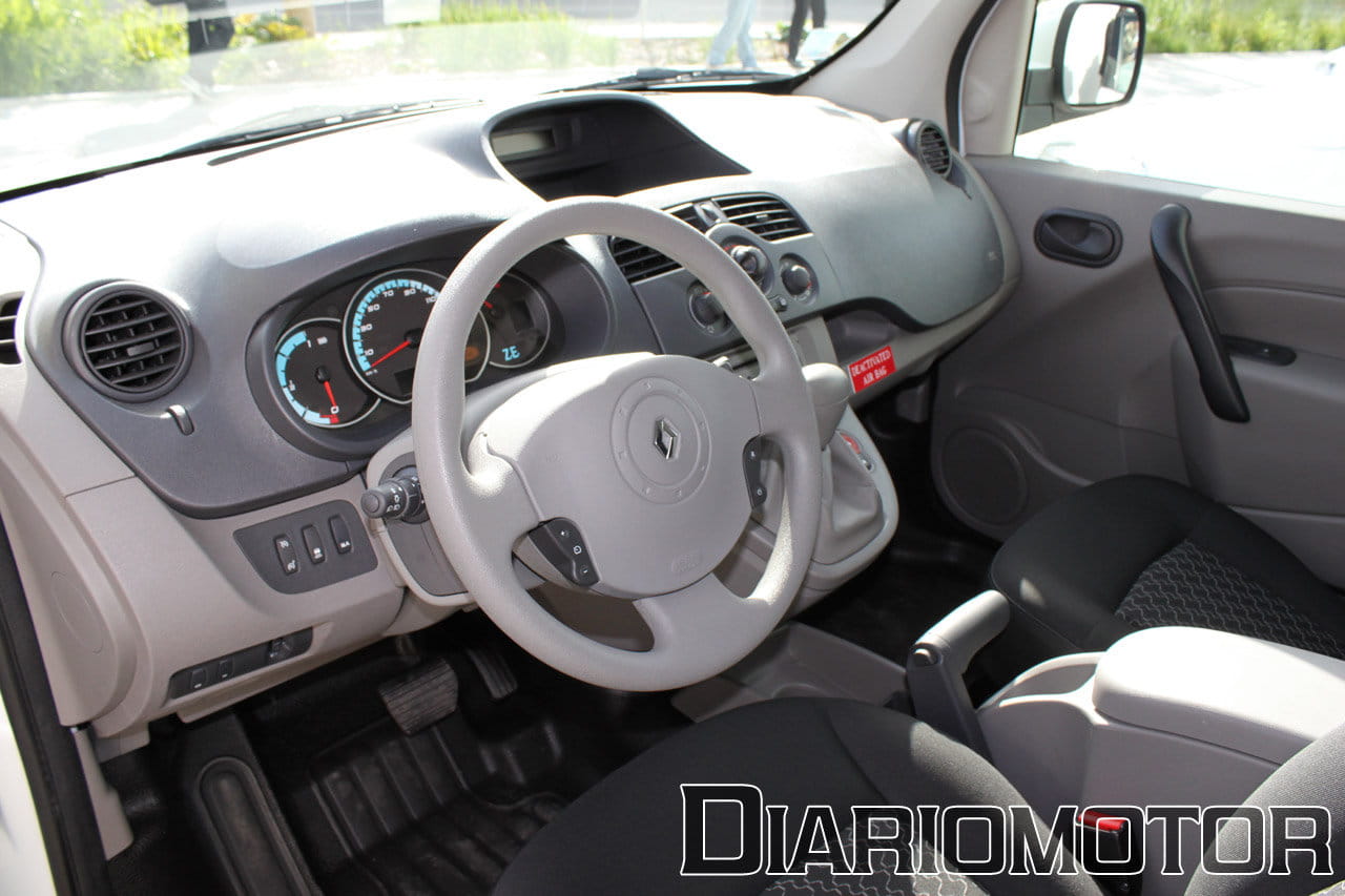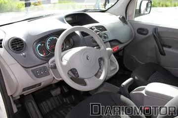 El habitáculo es idéntico al de cualquier otra Kangoo, con la excepción de la instrumentación, presidida por un velocímetro de tarado específico, flanqueado por un medidor de carga y un potenciómetro. La palanca del cambio de marchas es muy grande, derivada de versiones automáticas. Realmente no hay mucho más que contar del habitáculo biplaza, sencillo, con muchos plásticos duros pero correctamente rematados, lo que podríamos esperar de un industrial superventas como las Kangoo.