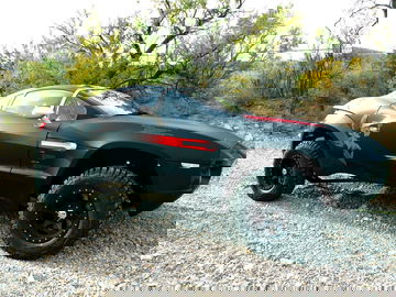 Y el resultado es lo que vemos en las imágenes, un coche pensado para hacer el cabra por terrenos abruptos. Su chasis tubular está fabricado en acero e incluye unas espectaculares suspensiones con un recorrido de más de medio metro. Los neumáticos son de conducción off-road puros y bajo ellos se ocultan unos enormes discos de freno.