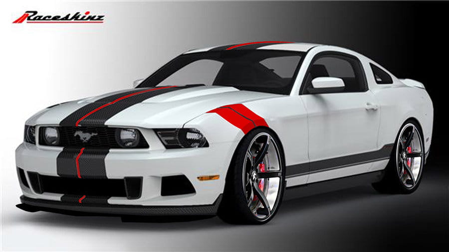 Negro y rojo, no hay más colores para el Mustang de Mobsteel. Es el V6 pero lleva un sistema turboalimentado y además su suspensión es neumática. Raceskinz prioriza el color blanco sobre un Mustang 5.0 V8 sobre el que añaden un compresor y cambian asientos por baquets.