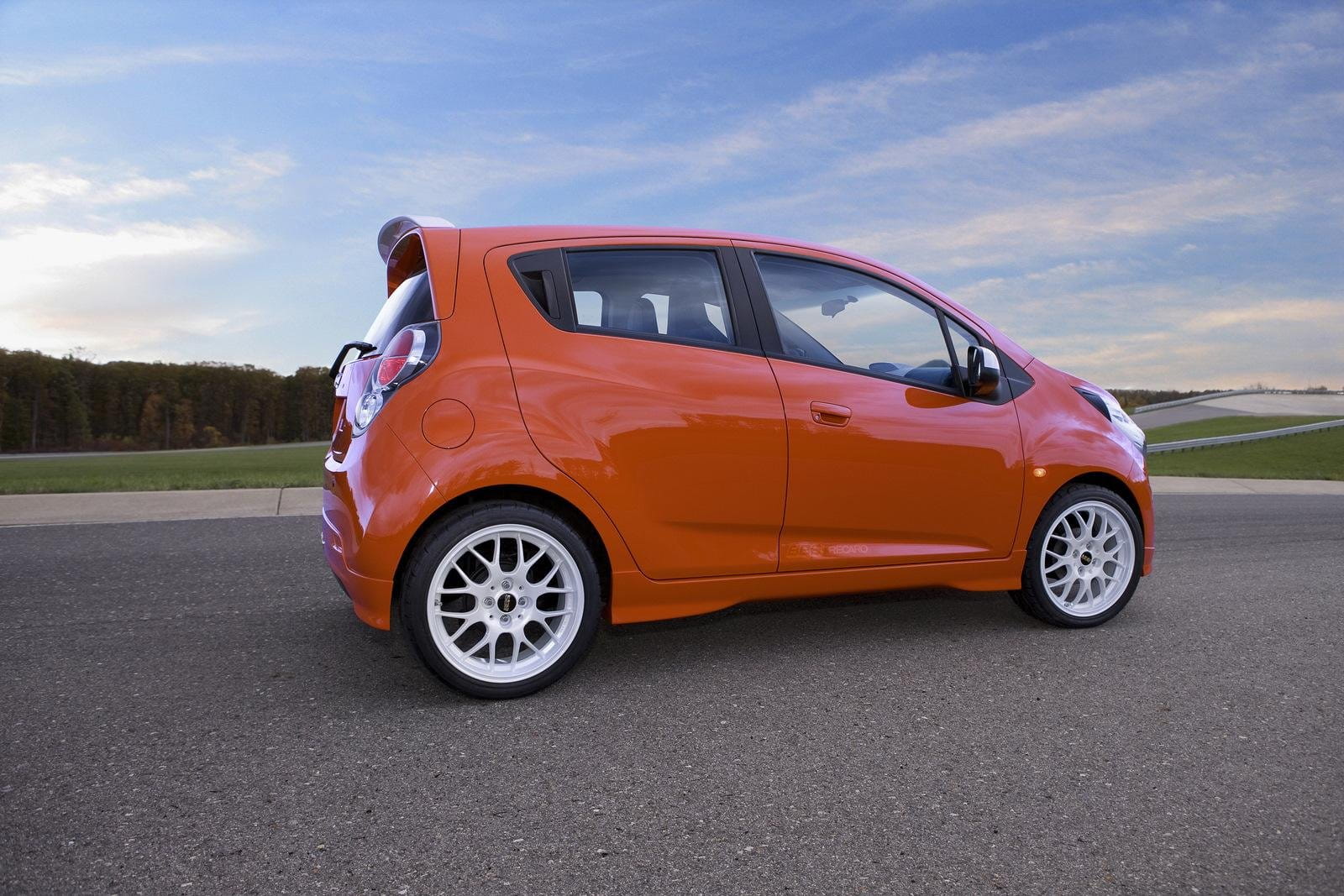 Y llegamos al Chevrolet Spark Z-Spec, el pequeñín de la familia, que en este caso se conforma con carcasas para los retrovisores exteriores, salida de escape cromada, nueva parrilla frontal, alerón posterior o llantas BBS de 17 pulgadas.