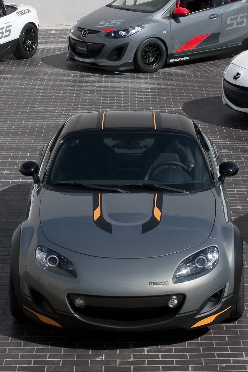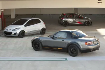 Mazda MX-5 Super20 y dos versiones del Mazda2 (Evil Track a la derecha)