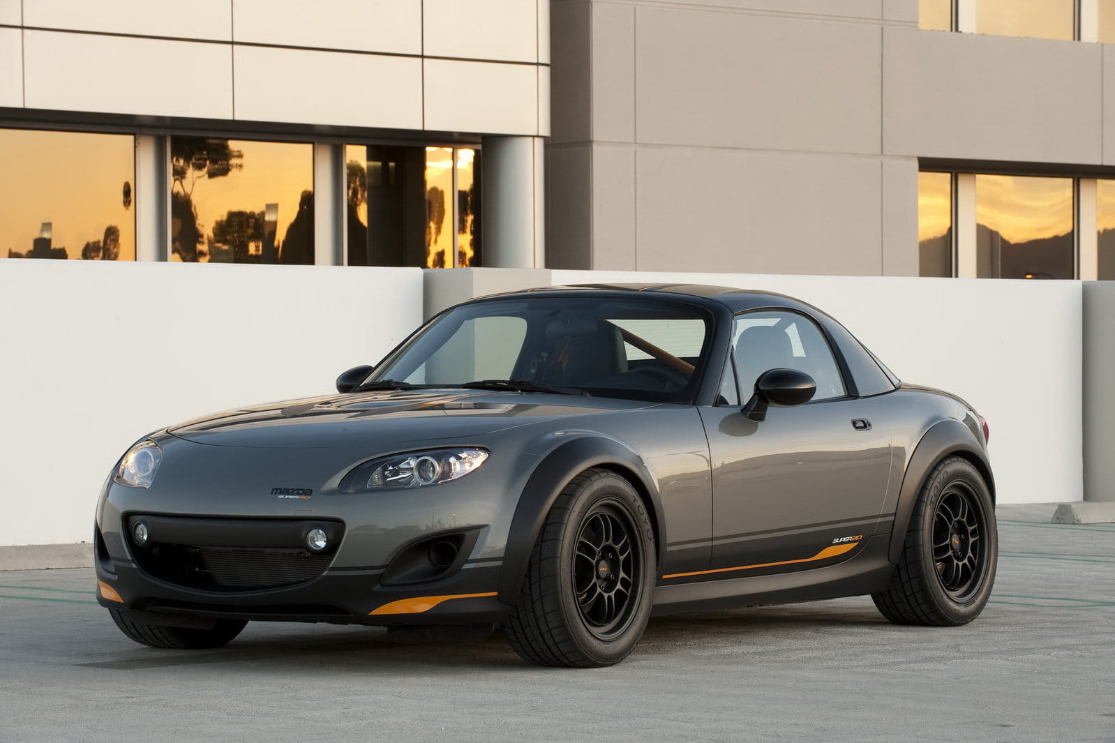 Es un MX-5 de techo rígido y lleva muchas mejoras a nivel mecánico (sistema de frenos, suspensión coilover Mazdaspeed, barras estabilizadoras, etc). Es de color gris oscuro pero tiene el techo y los bajos pintados en negro que se complementan con unas llantas de aleación de 16” en negro. Dentro lleva una barra de protección tras los asientos y un tratamiento que incluye cuero y piel de ante.